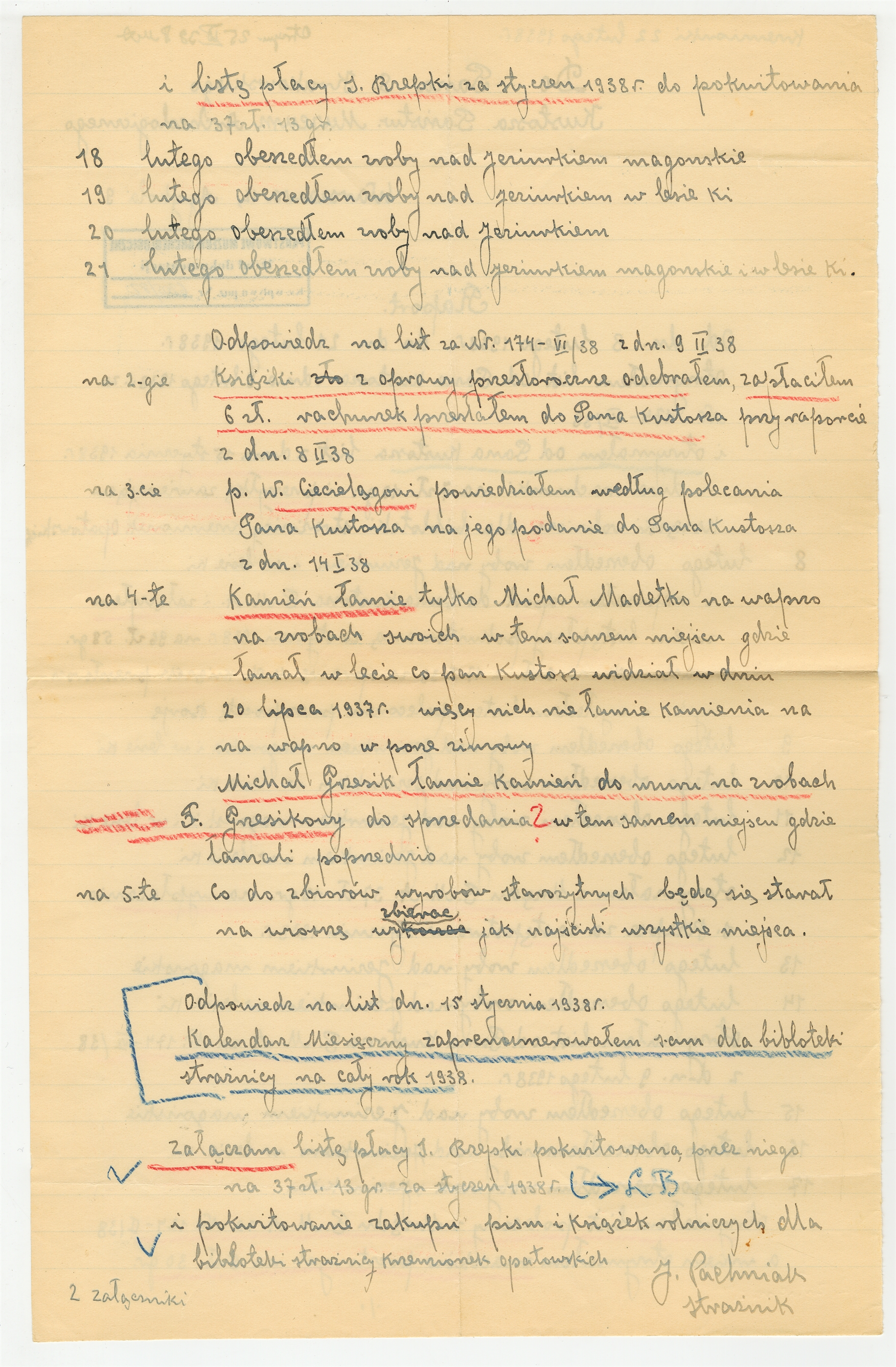 Rękopis - raport strażnika Krzemionek J. Pachniaka z dnia 22 lutego 1938 roku z okresu 8-21 lutego 1938 roku (cd)