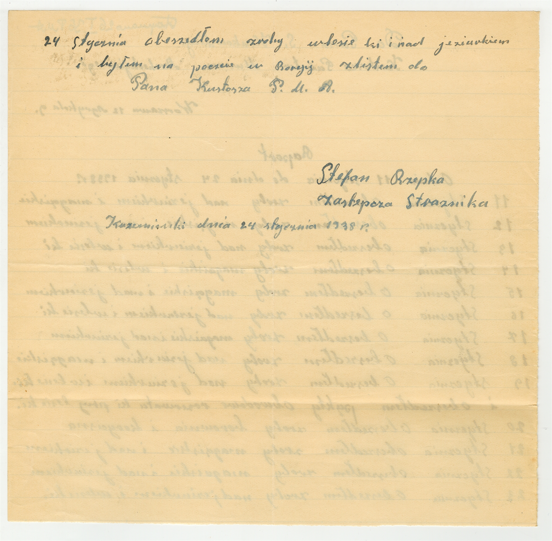 Rękopis - raport strażnika Krzemionek J. Pachniaka z dnia 24 stycznia 1938 roku z okresu 11-20 stycznia 1938 roku (cd)