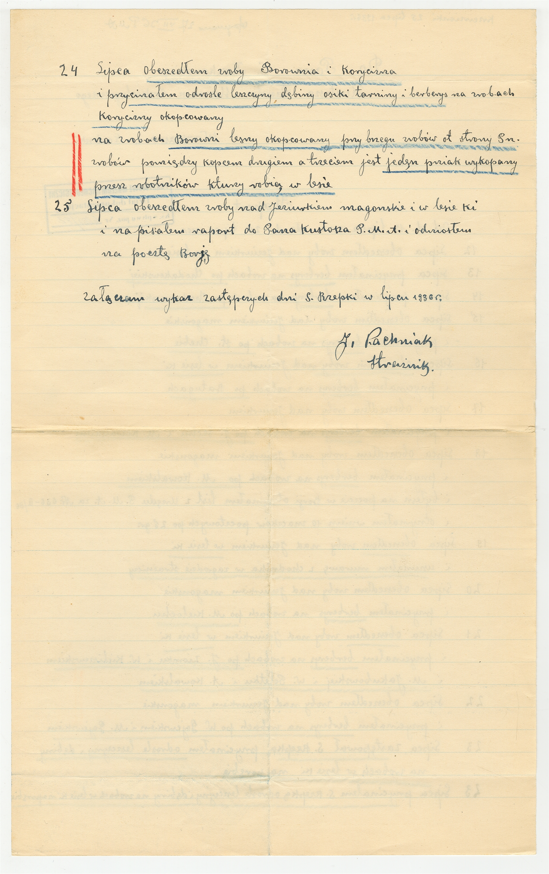 Rękopis - raport strażnika Krzemionek J. Pachniaka z dnia 25 lipca 1936 roku z okresu 12 -25 lipca 1936 roku (cd)