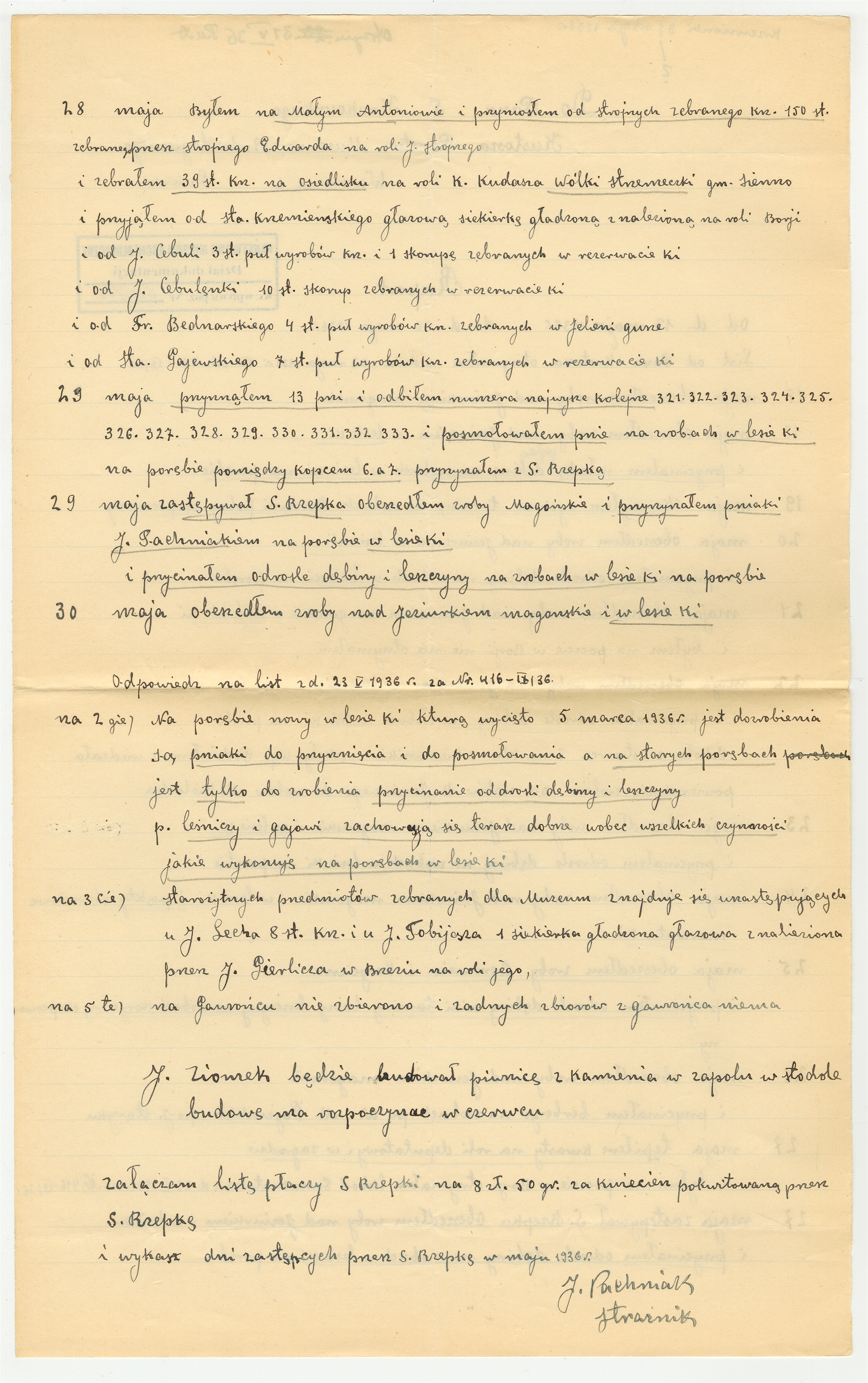 Rękopis - raport strażnika Krzemionek J. Pachniaka z dnia 31 maja 1936 roku z okresu 17 -30 maja 1936 roku (cd)