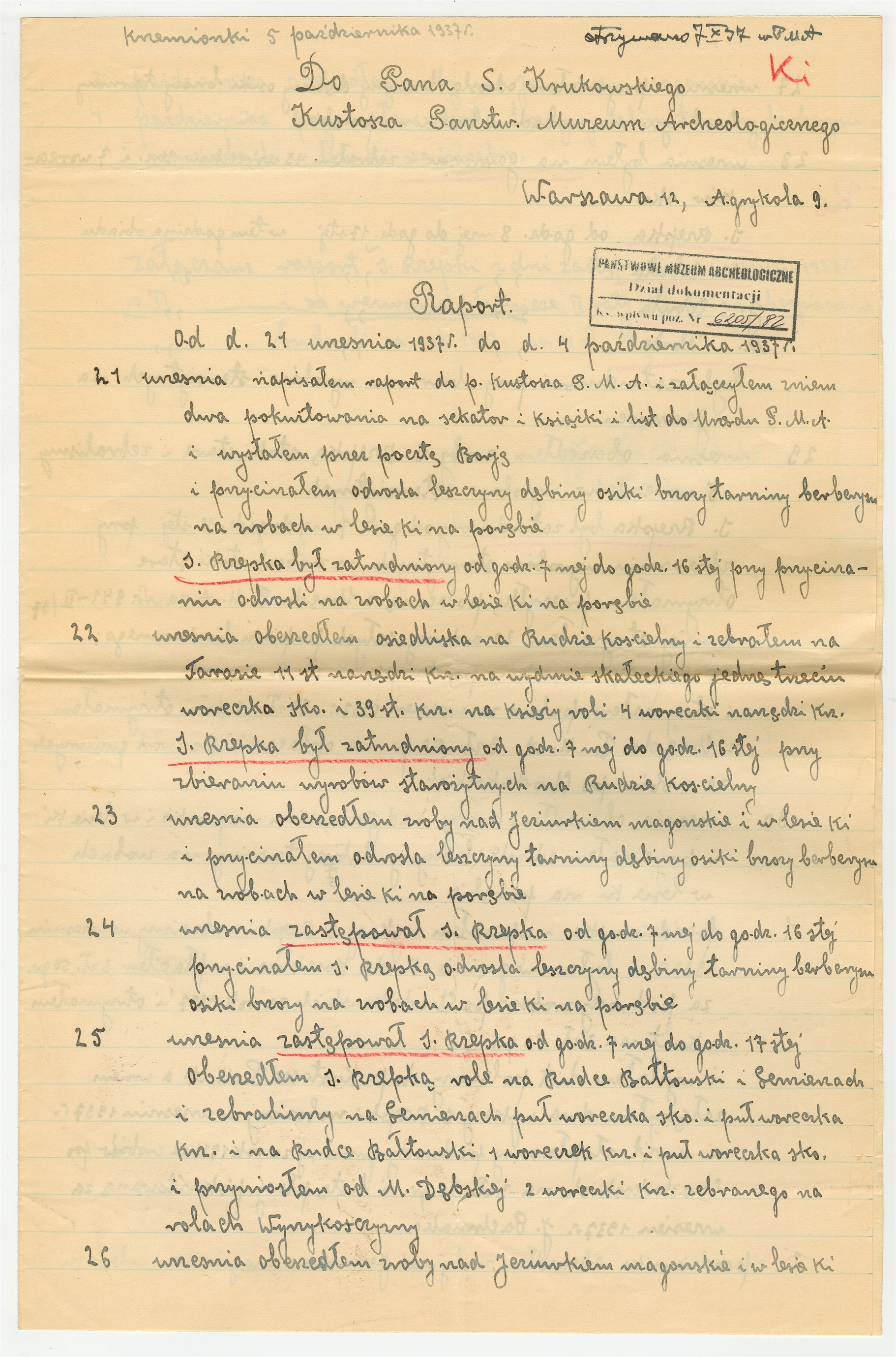 Rękopis - raport strażnika Krzemionek J. Pachniaka z dnia 5 października 1937 roku z okresu 21 września - 4 października 1937 roku