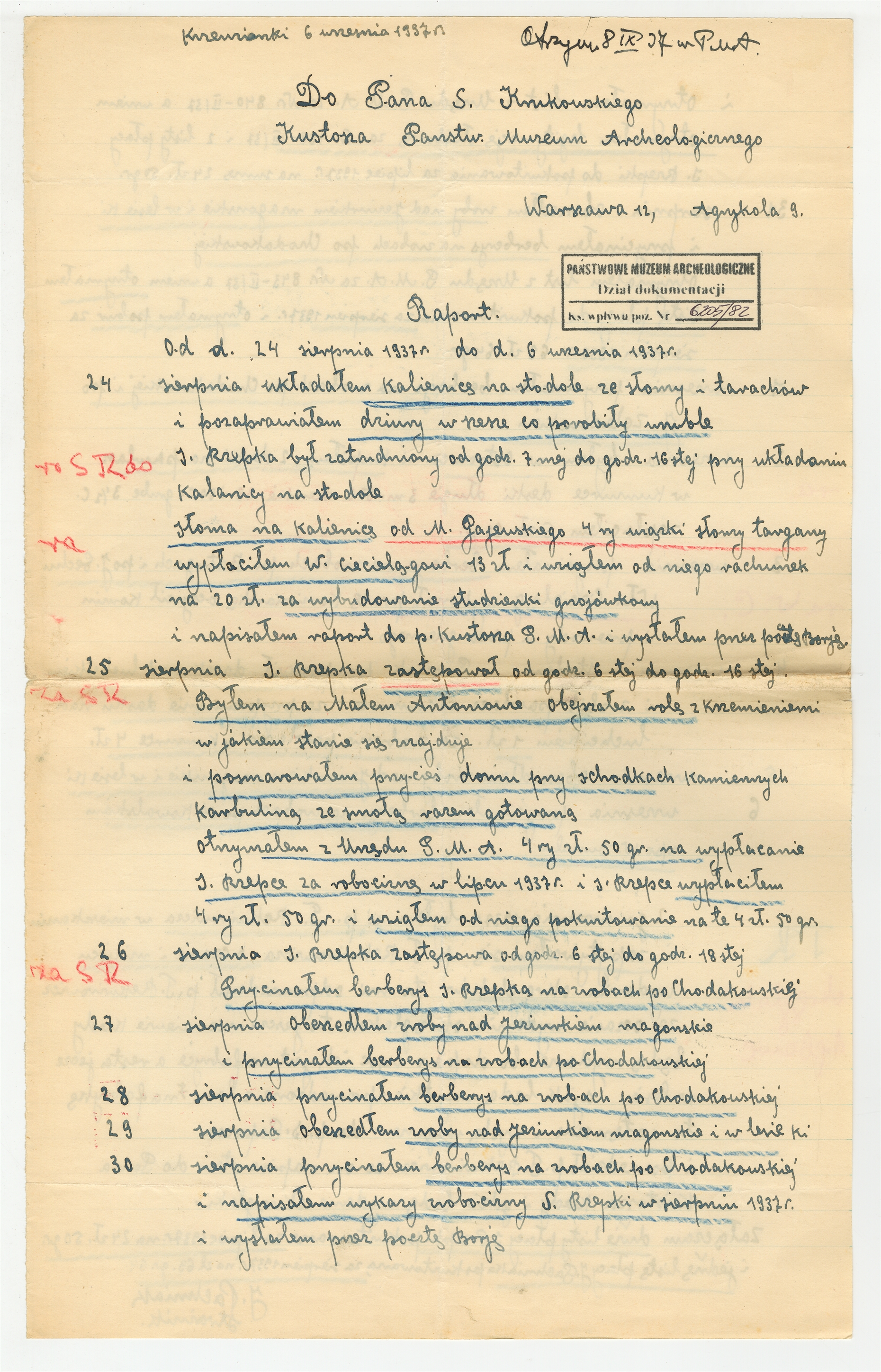 Rękopis - raport strażnika Krzemionek J. Pachniaka z dnia 6 września 1937 roku z okresu 24 sierpnia -6 września 1937 roku