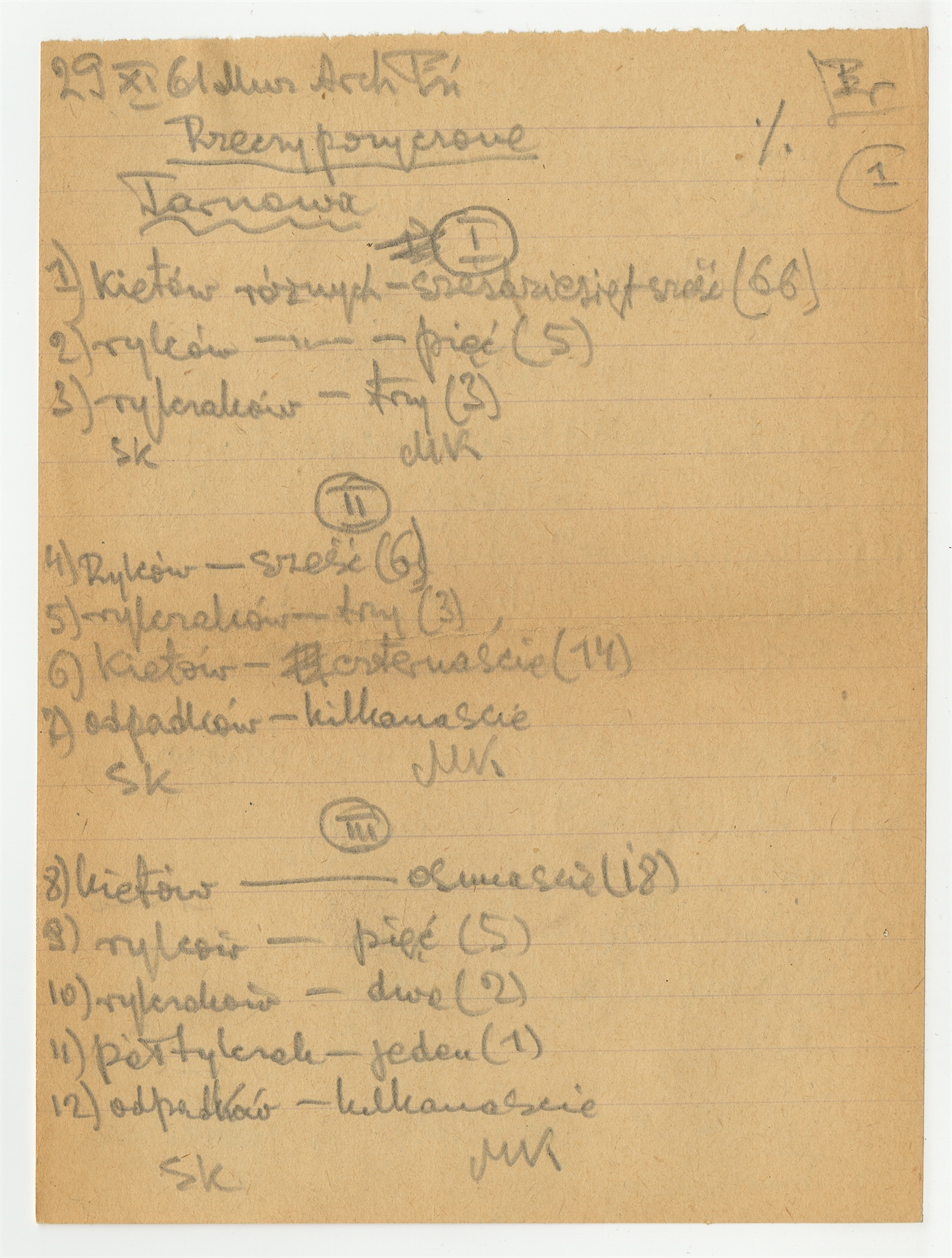 Rękopis - rewers z wykazem rzeczy pożyczonych z Muzeum Archeologicznego w Poznaniu ze stanowiska Tarnowa