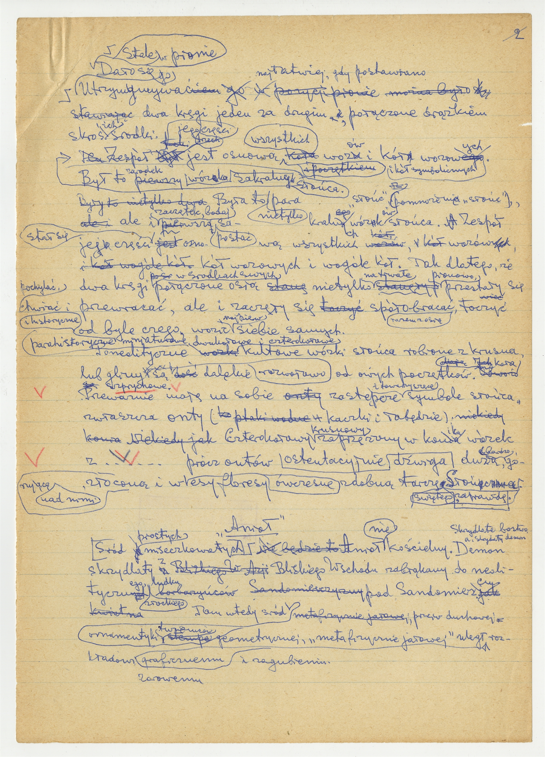 Rękopis rozprawy pt. "Słońce koło i anioł" - strona 2: "(…) Stele w pionie. Dał się go utrzymywać (…)" "Anioł"