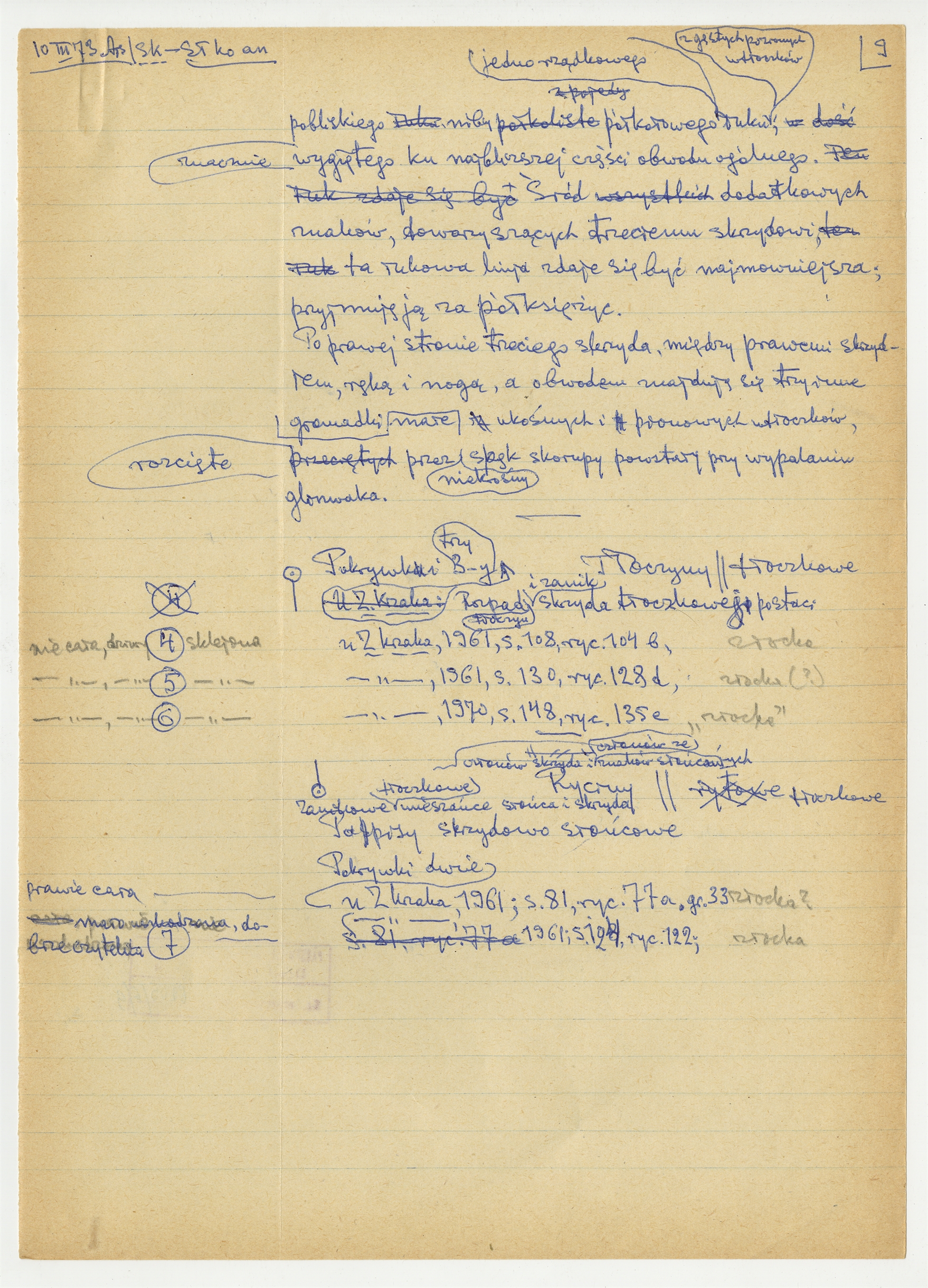 Rękopis rozprawy pt. "Słońce koło i anioł" - strona 20: "Treść i kolejność obrazków przykrywkowych ze stronic 1 i 2 (do tekstu)" c.d. 10 III [19]73