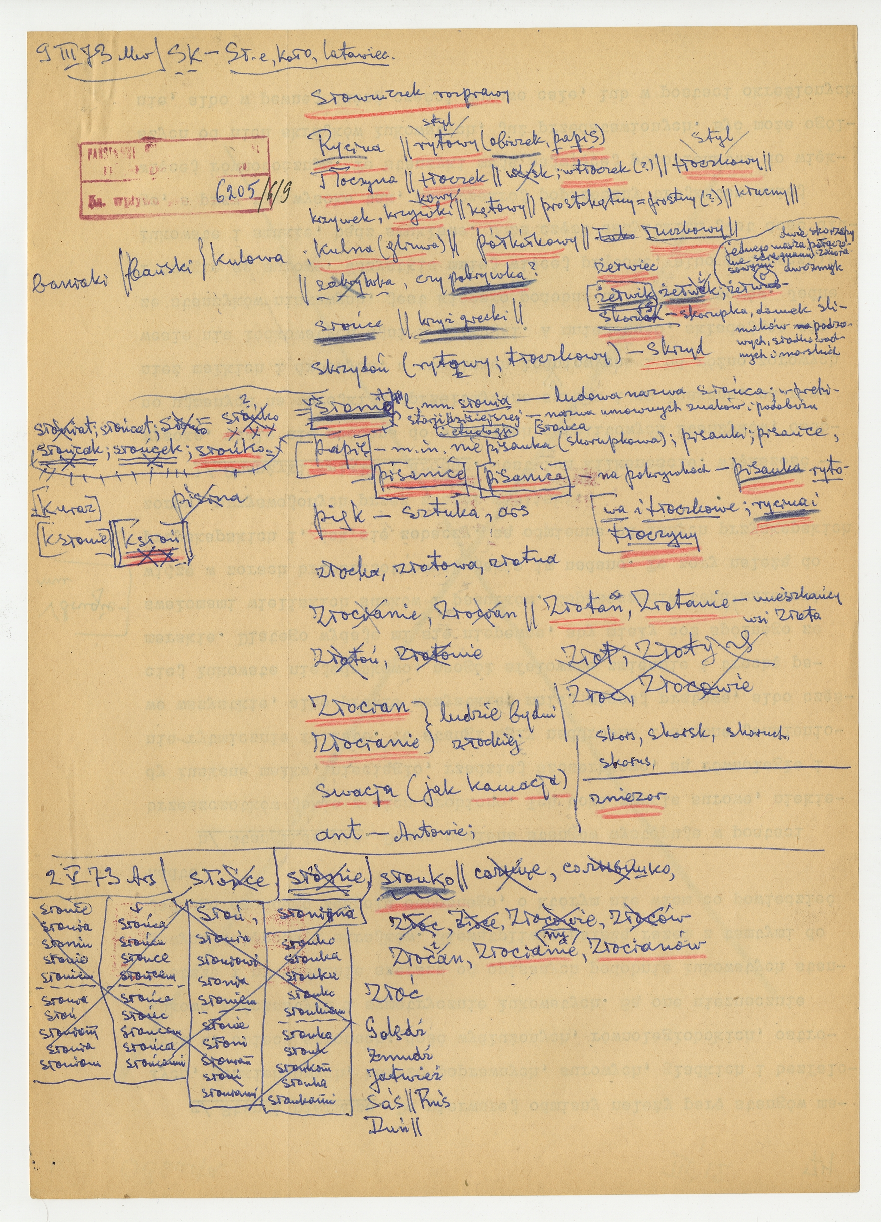 Rękopis rozprawy pt. "Słońce koło i anioł" - strona 21: "Słowniczek rozprawy" 9 III [19]73