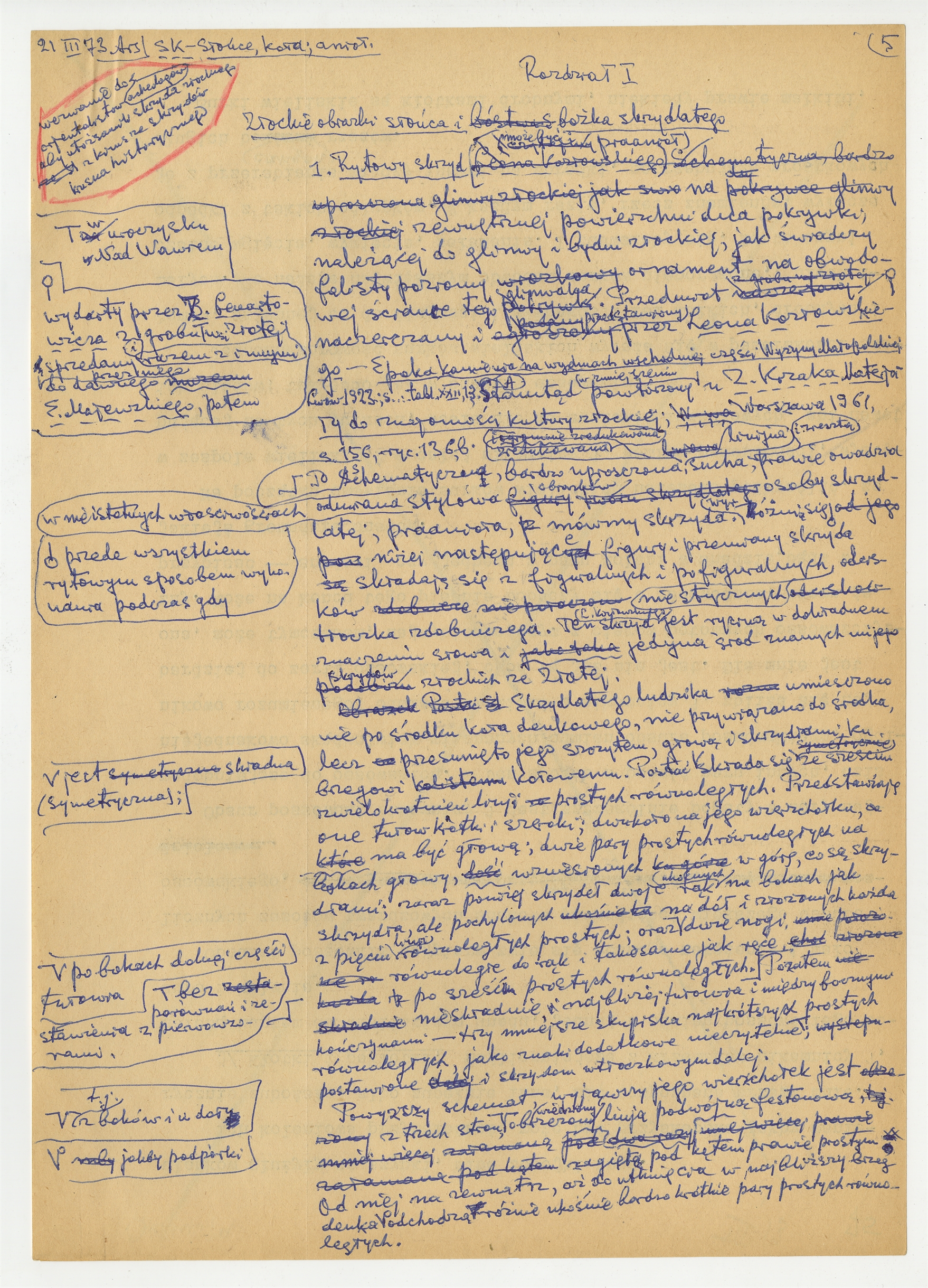 Rękopis rozprawy pt. "Słońce koło i anioł" - strona 26: "Rozdział I. Złockie obrazki słońca i bożka skrzydlatego" 21 III [19]73