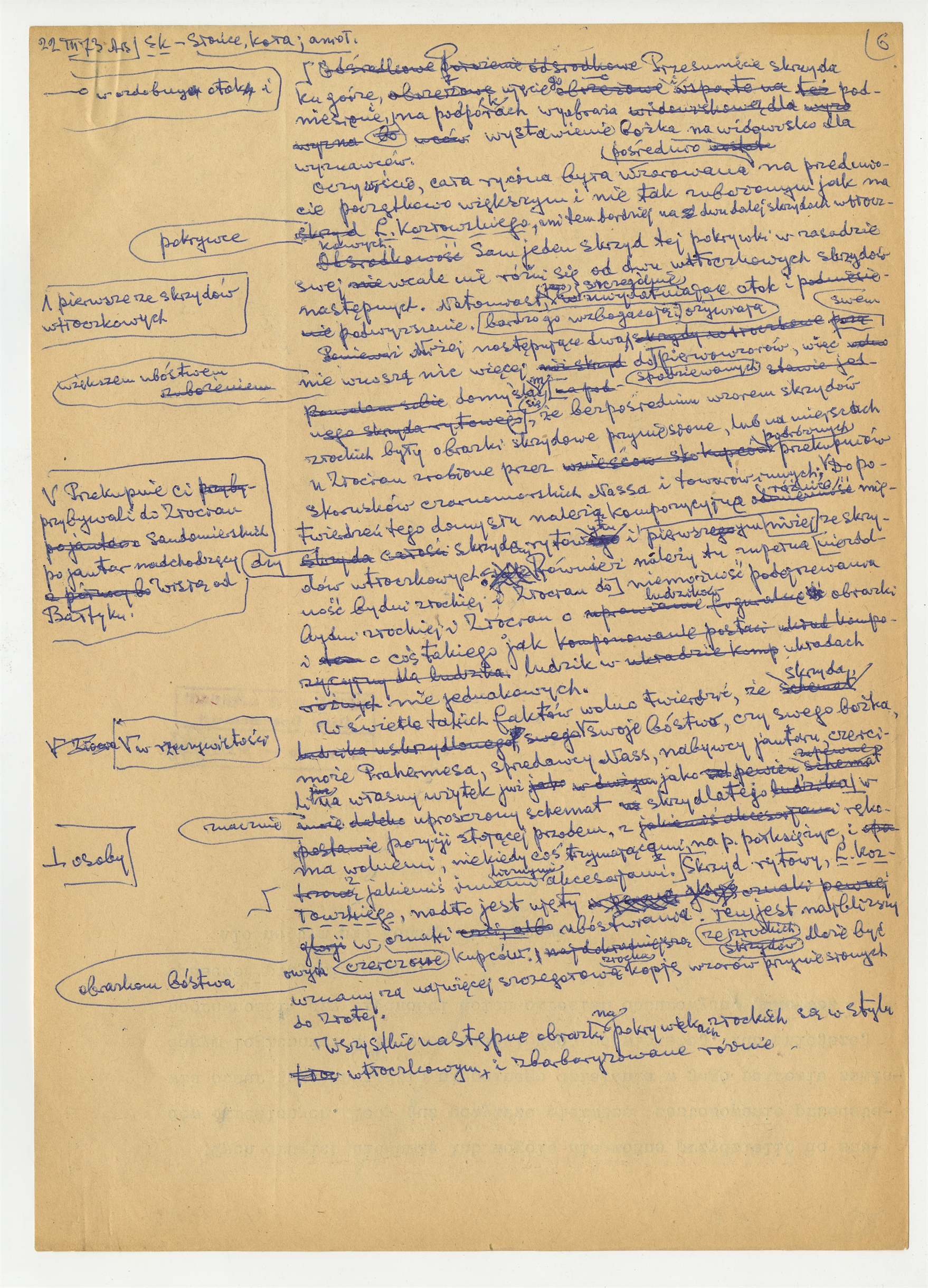Rękopis rozprawy pt. "Słońce koło i anioł" - strona 27: "Rozdział I. Złockie obrazki słońca i bożka skrzydlatego" c.d. 21 III [19]73