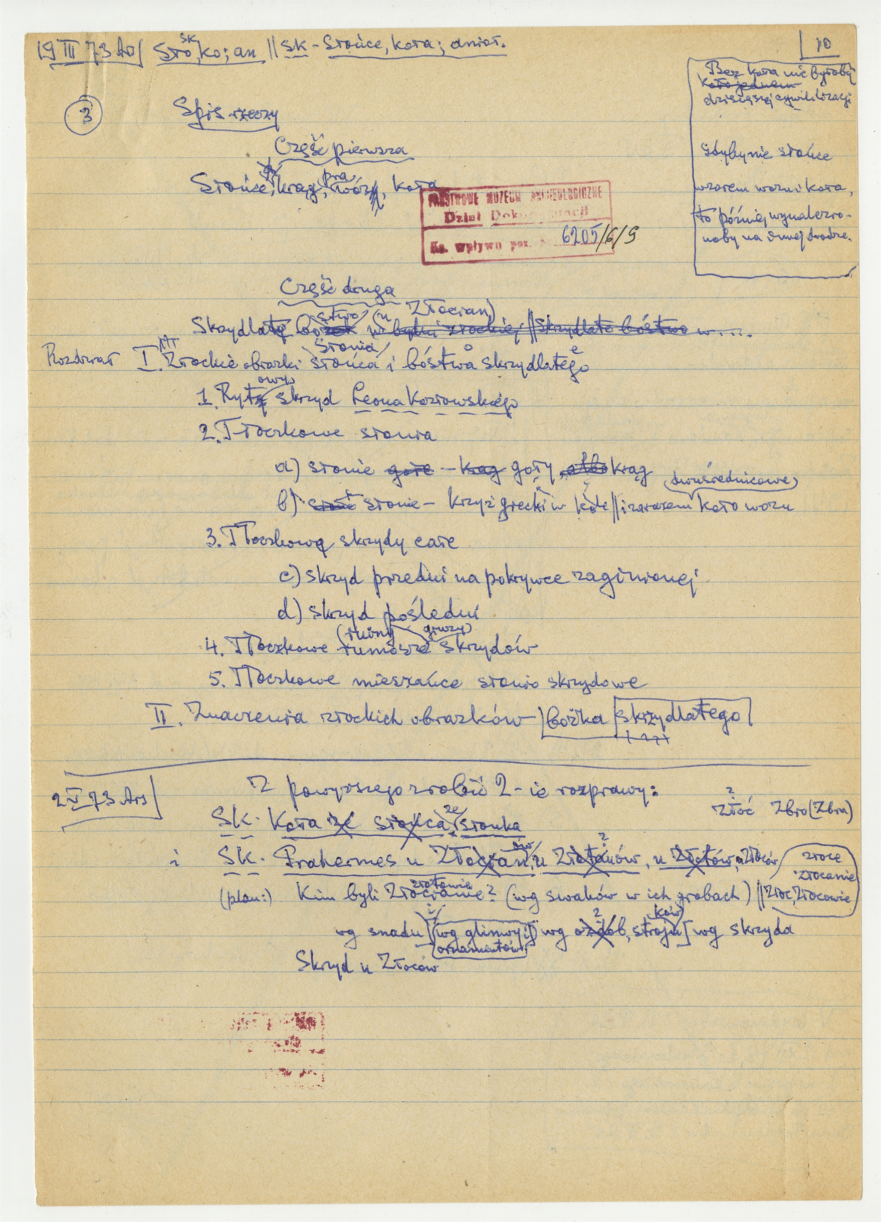 Rękopis rozprawy pt. "Słońce koło i anioł" - strona 8: "Spis rzeczy"