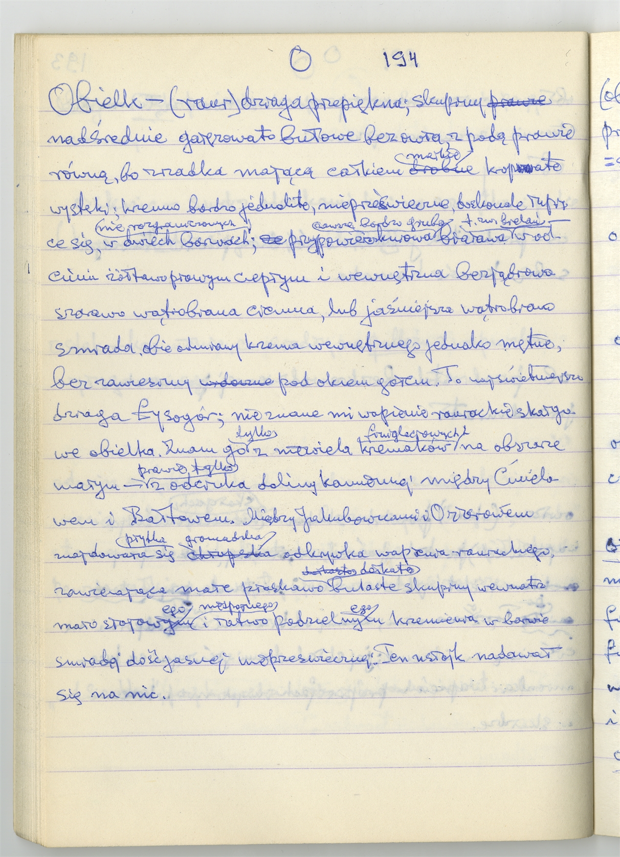 Rękopis słownika sporządzony w zeszycie w linię zatytułowany "K-O i K2 s. 121-240" - strona 53: hasła słownikowe na literę O c.d. (autorska strona 194)