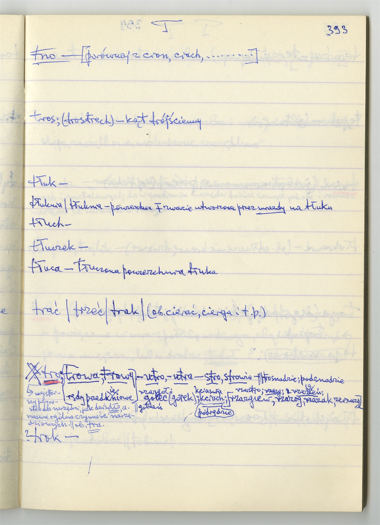 Rękopis słownika sporządzony w zeszycie w linię zatytułowany "Słownik S-Z Ż Ź s. 361-480" - strona 34: hasła słownikowe na literę T c.d. (autorska strona 393)