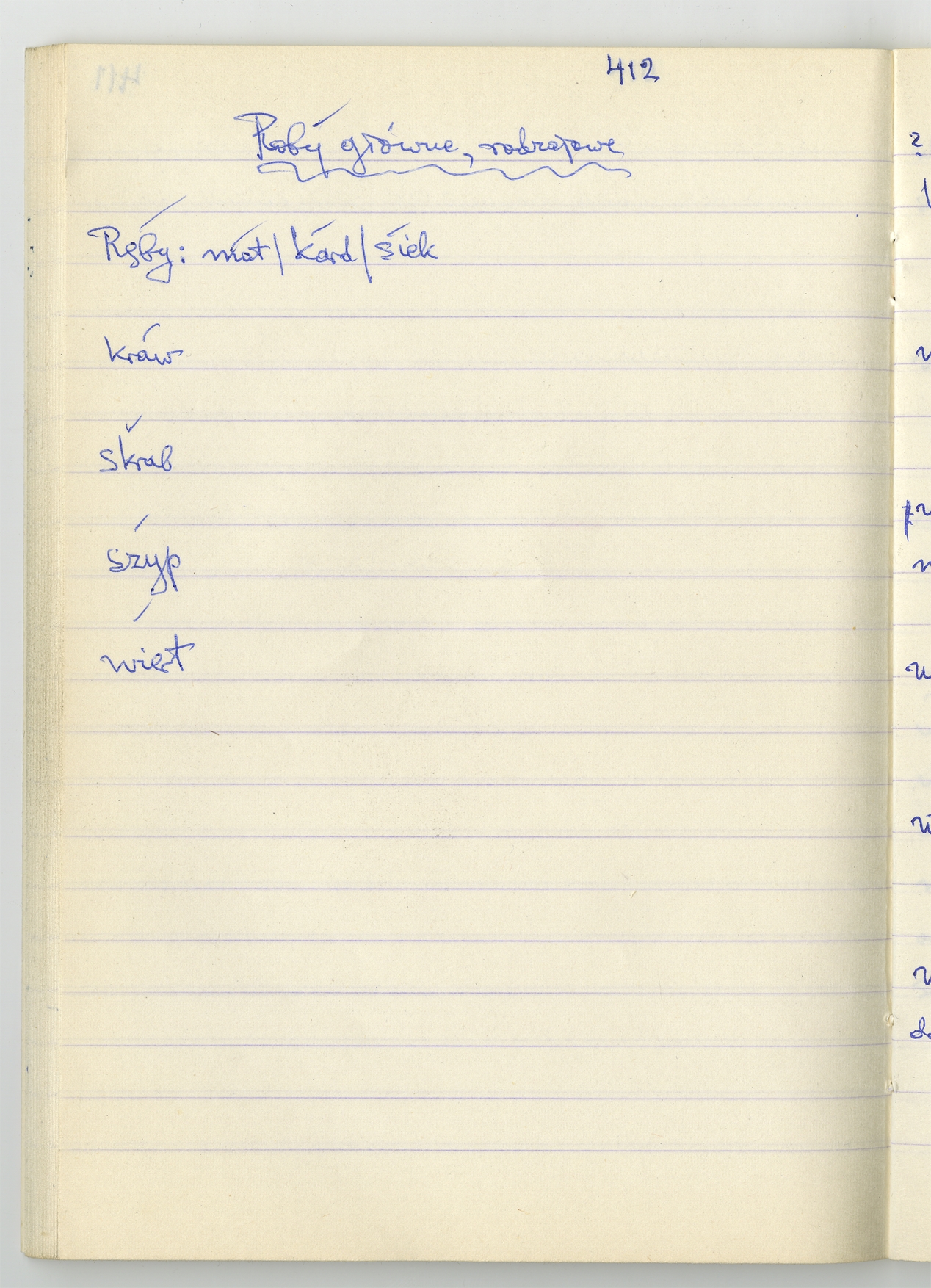 Rękopis słownika sporządzony w zeszycie w linię zatytułowany "Słownik S-Z Ż Ź s. 361-480" - strona 45: "Roby główne rodzajowe" (autorska strona 412)