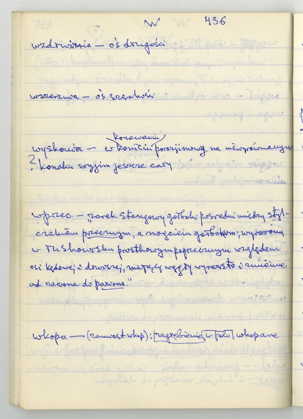 Rękopis słownika sporządzony w zeszycie w linię zatytułowany "Słownik S-Z Ż Ź s. 361-480" - strona 66: hasła słownikowe na literę W c.d. (autorska strona 436)