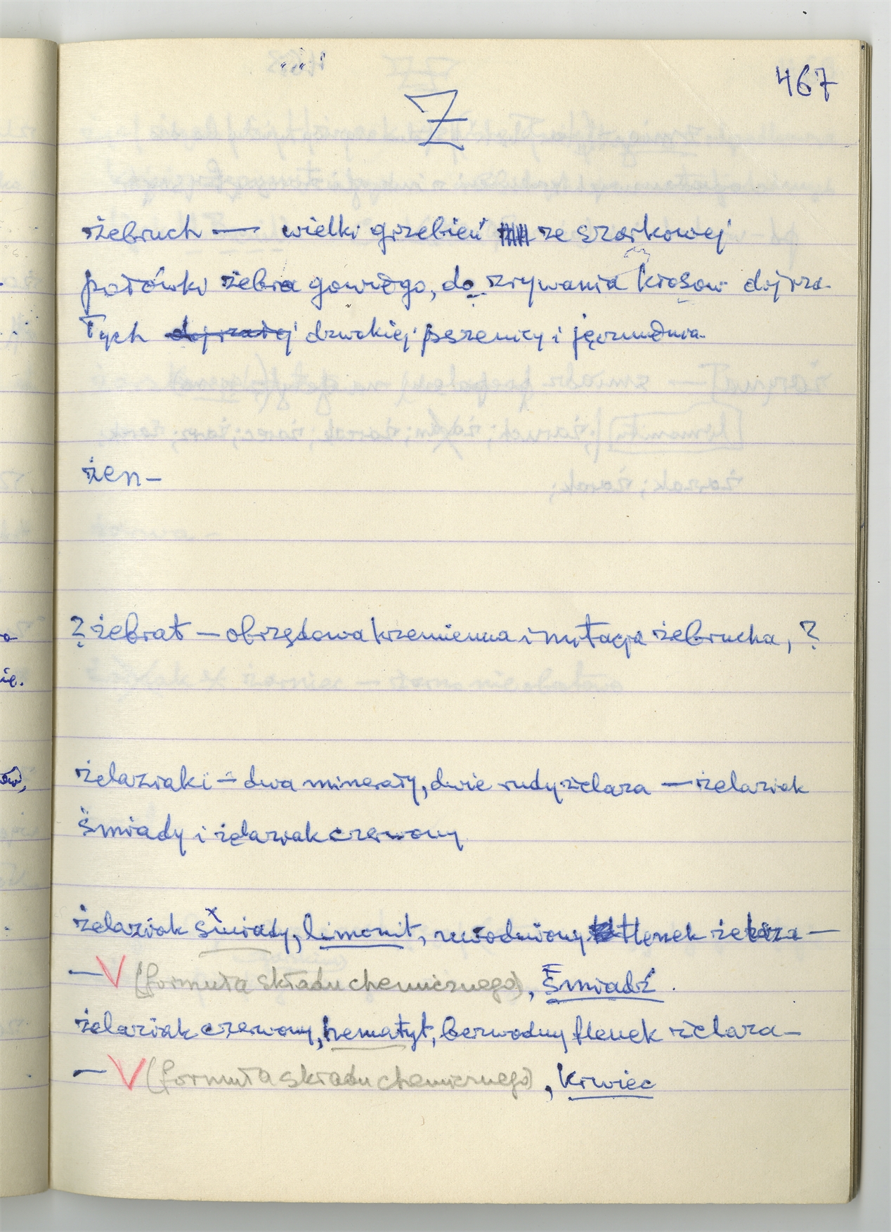 Rękopis słownika sporządzony w zeszycie w linię zatytułowany "Słownik S-Z Ż Ź s. 361-480" - strona 97: hasła słownikowe na literę Ż (autorska strona 467)