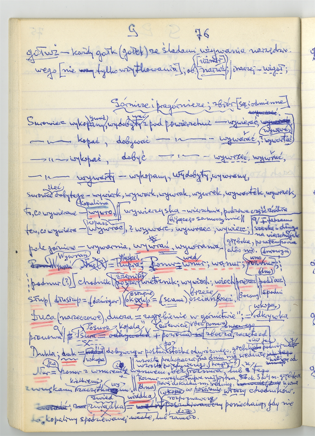 Rękopis słownika sporządzony w zeszycie w linię zatytułowany "Zumia stosowana Br. 1 A-J i D2 s. 1-120" - strona 59: hasła słownikowe na literę G c.d. (autorska strona 76)