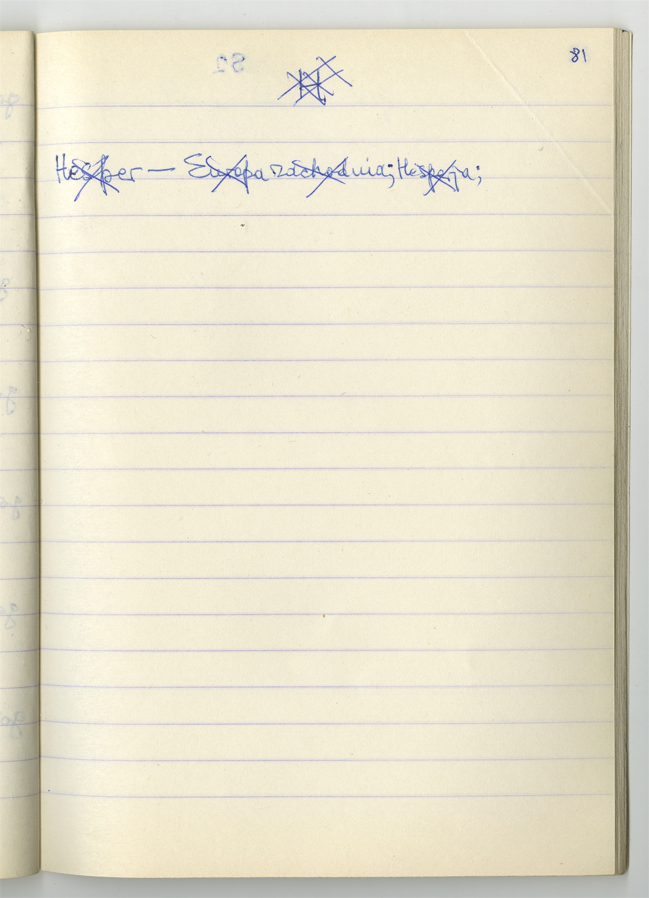 Rękopis słownika sporządzony w zeszycie w linię zatytułowany "Zumia stosowana Br. 1 A-J i D2 s. 1-120" - strona 63: hasła słownikowe na literę H (przekreślone) (autorska strona 81)