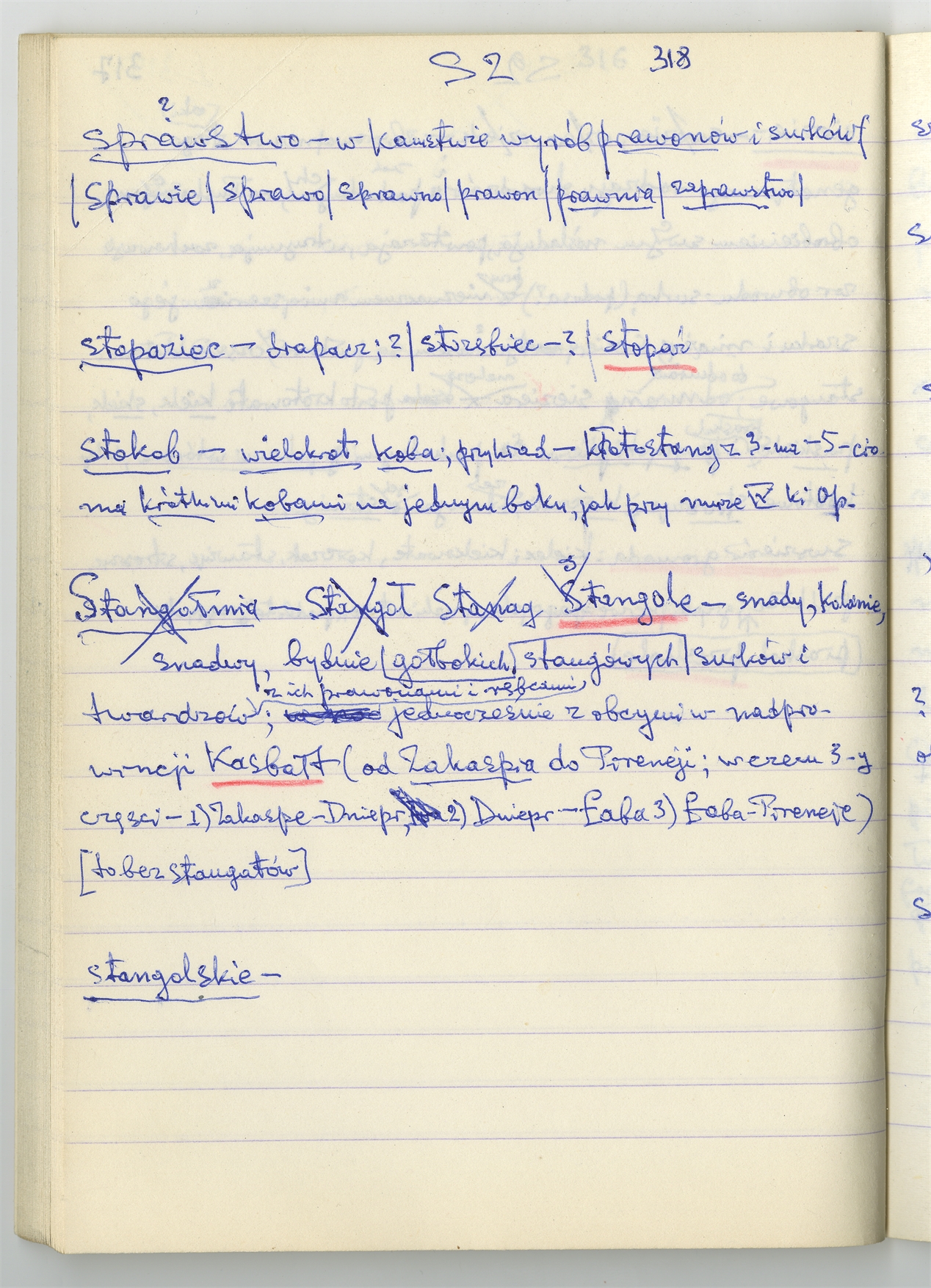 Rękopis słownika sporządzony w zeszycie w linię zatytułowany "Zumia stosowana P-R i S2 W2 Z2 s. 241-360" - strona 70: hasła słownikowe na literę S(2) c.d. (autorska strona 318)