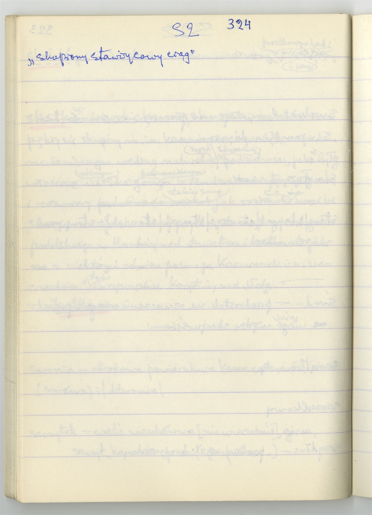 Rękopis słownika sporządzony w zeszycie w linię zatytułowany "Zumia stosowana P-R i S2 W2 Z2 s. 241-360" - strona 76: hasła słownikowe na literę S(2) c.d. (autorska strona 324)