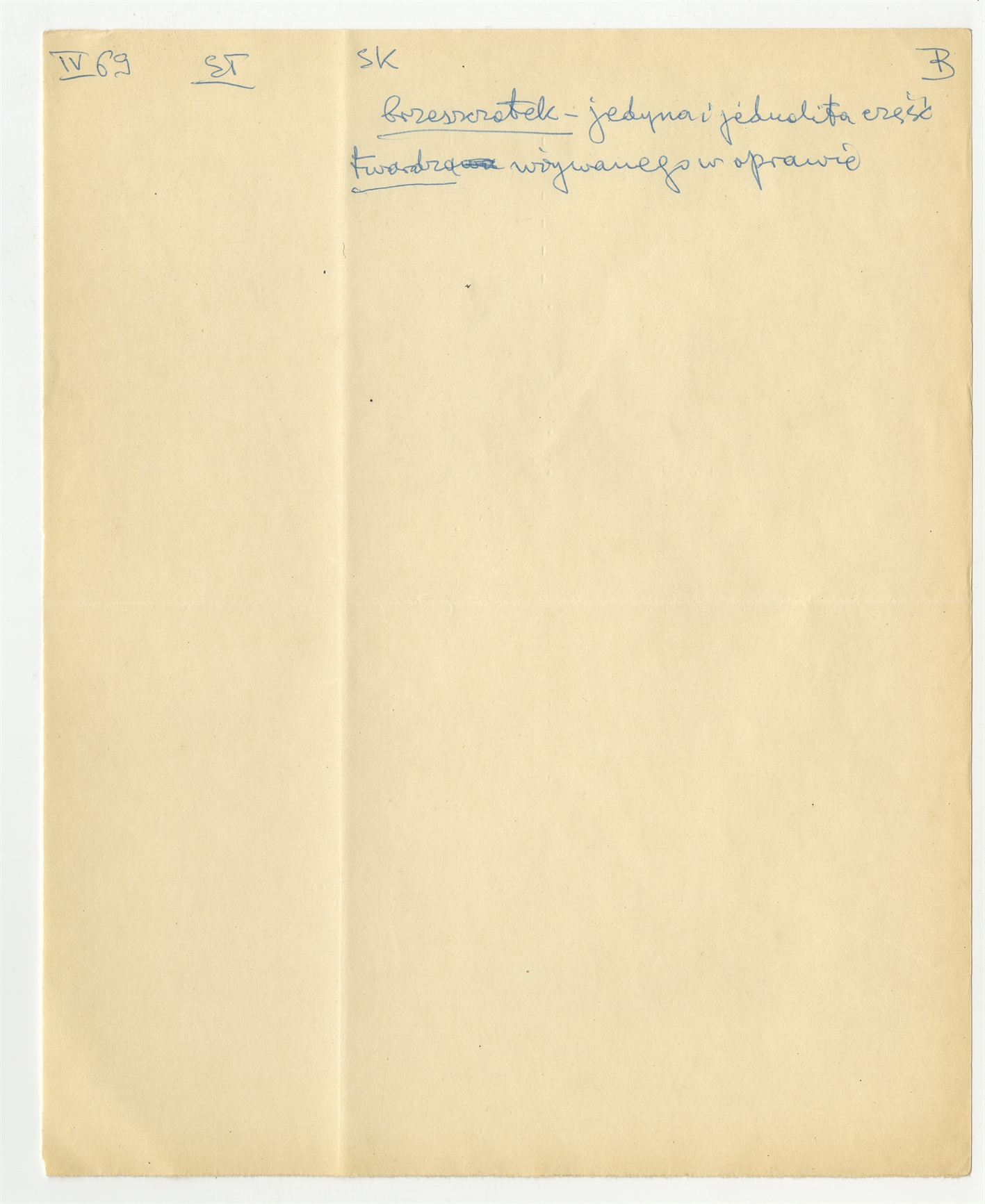 Rękopis słownika w postaci luźnych kartek - strona 10: hasło słownikowe na literę B IV [19]69