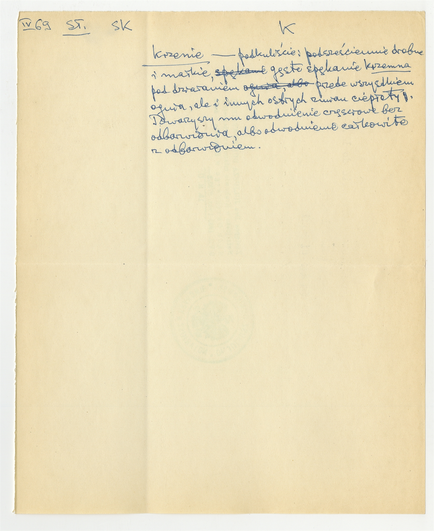 Rękopis słownika w postaci luźnych kartek - strona 101: hasło słownikowe na literę K IV [19]69