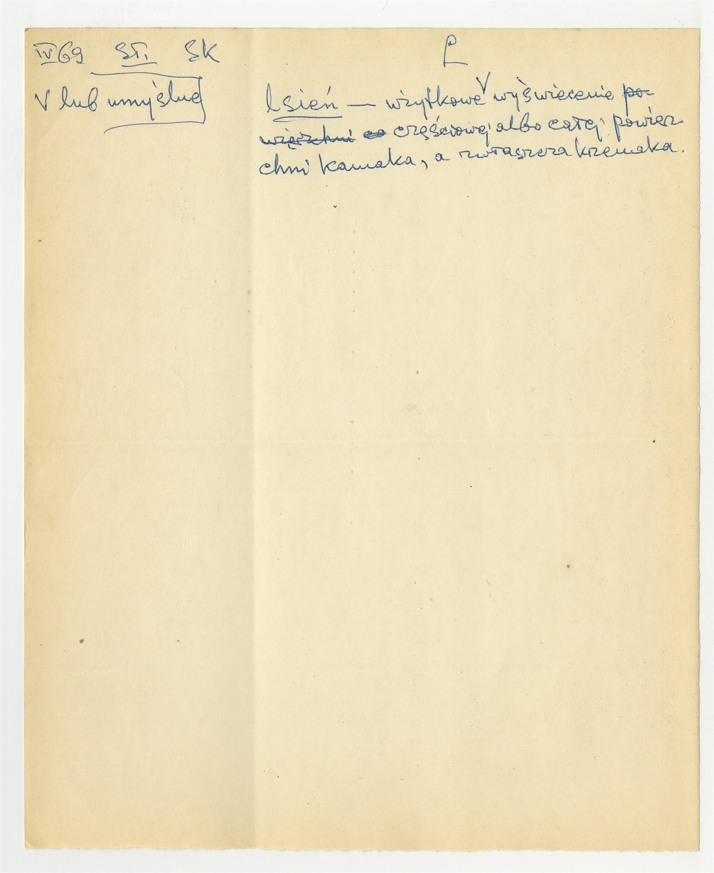 Rękopis słownika w postaci luźnych kartek - strona 106: hasło słownikowe na literę L IV [19]69