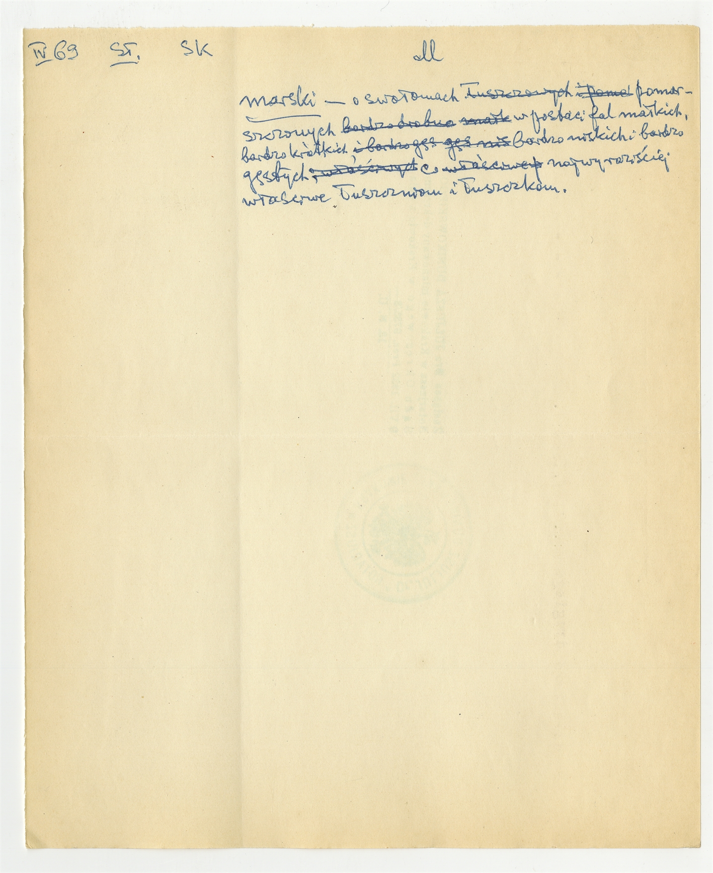 Rękopis słownika w postaci luźnych kartek - strona 121: hasło słownikowe na literę M IV [19]69