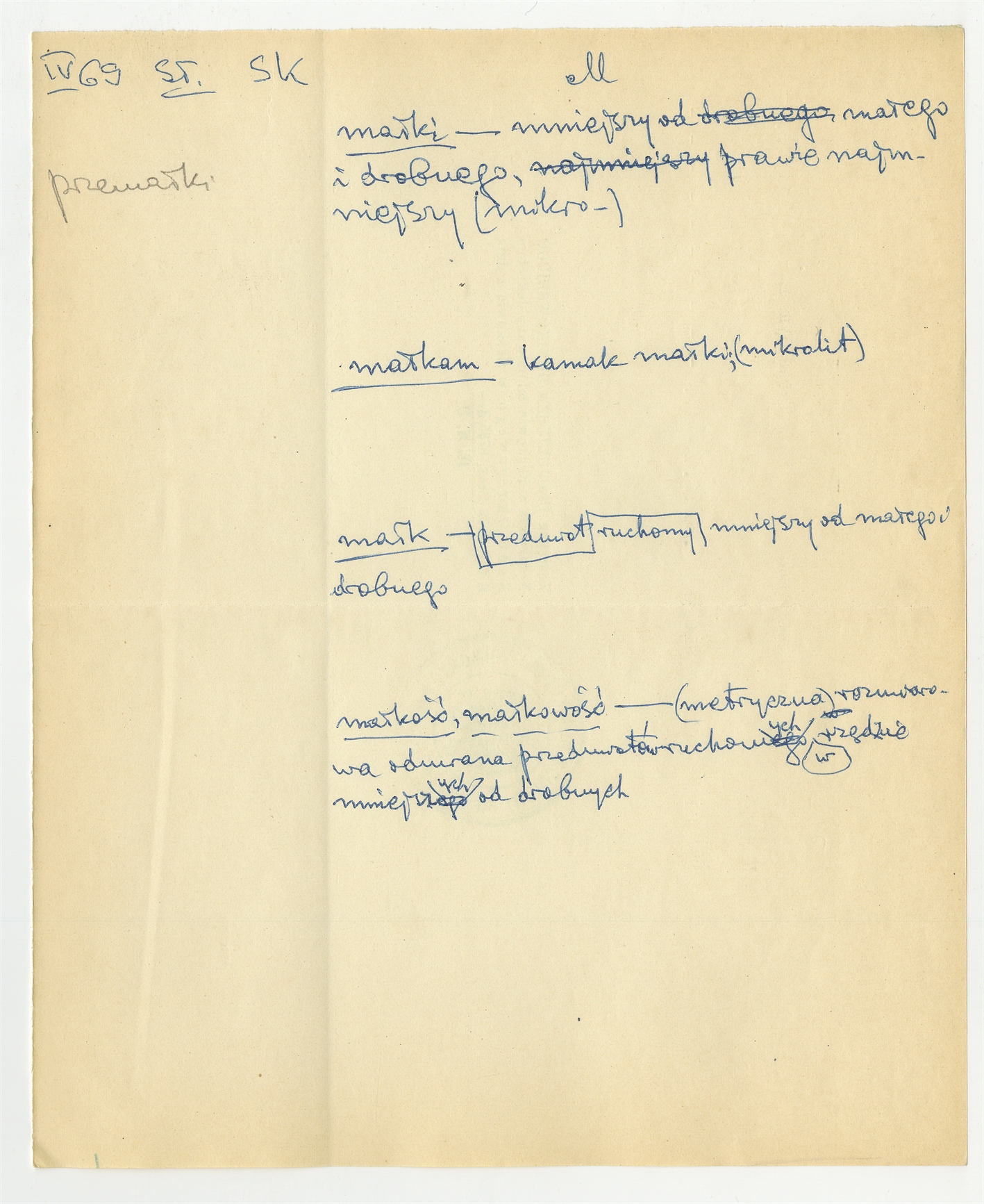 Rękopis słownika w postaci luźnych kartek - strona 122: hasła słownikowe na literę M IV [19]69