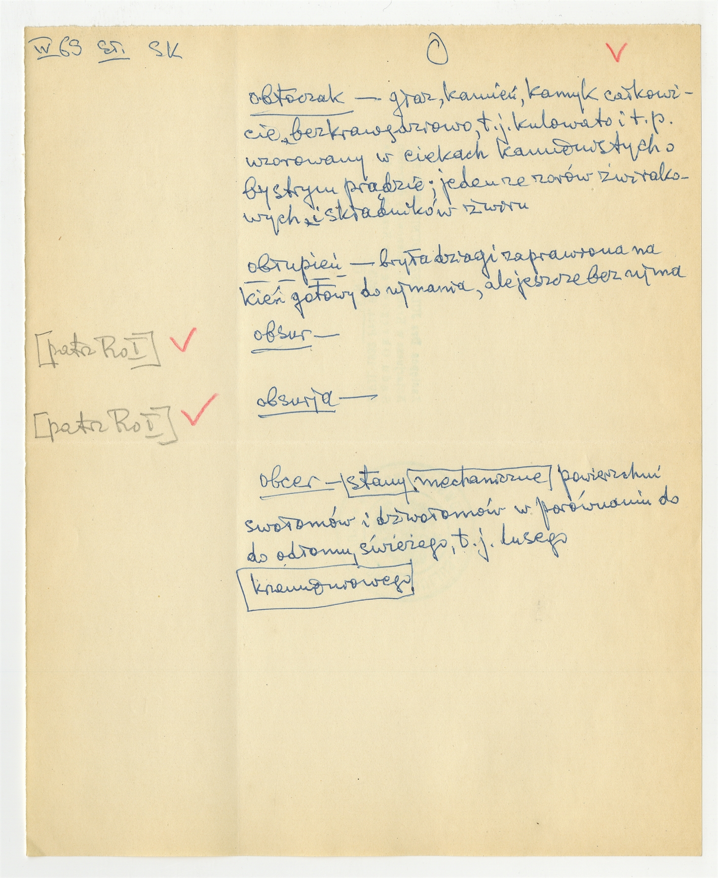 Rękopis słownika w postaci luźnych kartek - strona 135: hasła słownikowe na literę O IV [19]69
