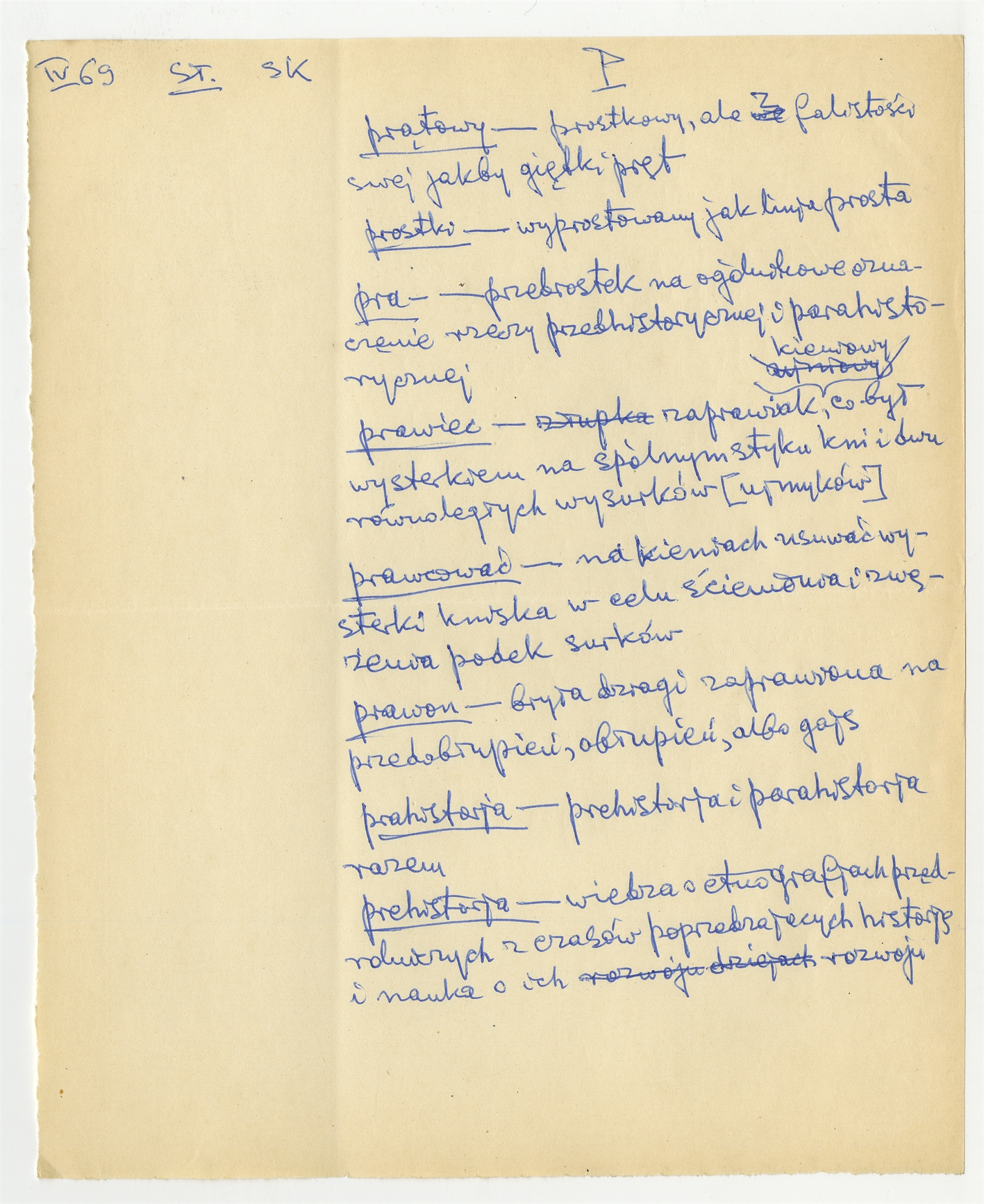 Rękopis słownika w postaci luźnych kartek - strona 147: hasła słownikowe na literę P IV [19]69