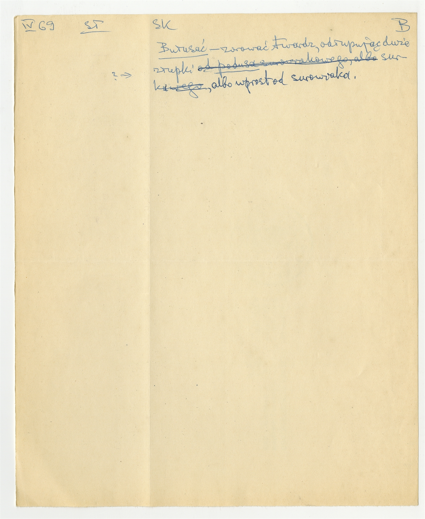 Rękopis słownika w postaci luźnych kartek - strona 16: hasło słownikowe na literę B IV [19]69