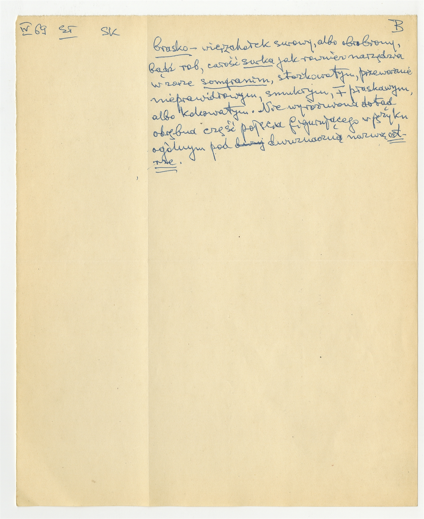 Rękopis słownika w postaci luźnych kartek - strona 21: hasło słownikowe na literę B IV [19]69