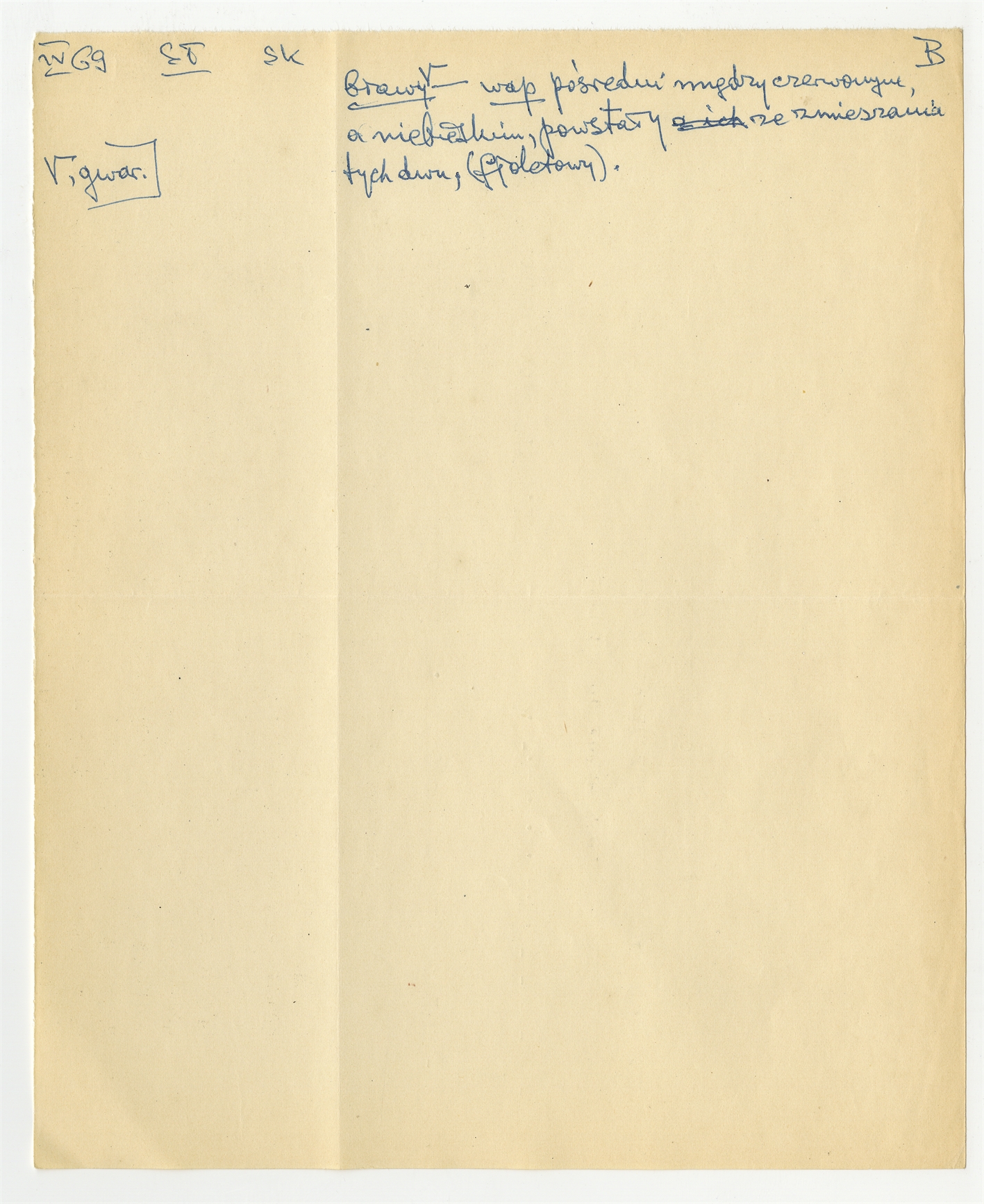 Rękopis słownika w postaci luźnych kartek - strona 22: hasło słownikowe na literę B IV [19]69