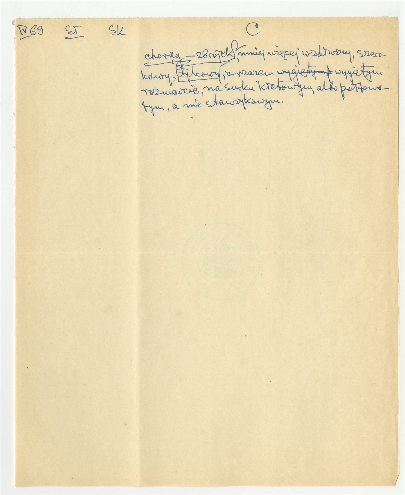 Rękopis słownika w postaci luźnych kartek - strona 27: hasło słownikowe na literę C IV [19]69