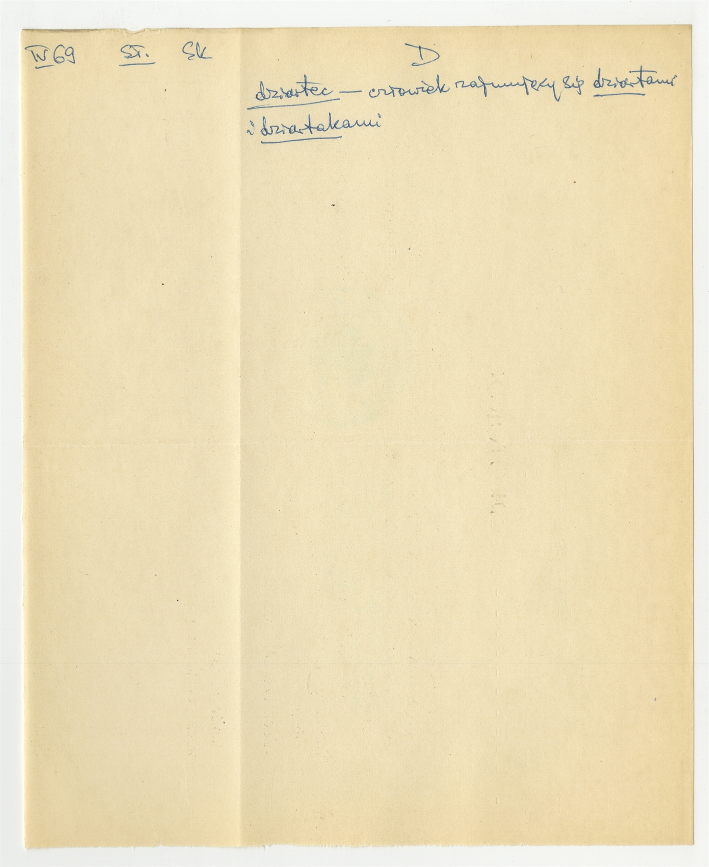 Rękopis słownika w postaci luźnych kartek - strona 31: hasło słownikowe na literę D IV [19]69