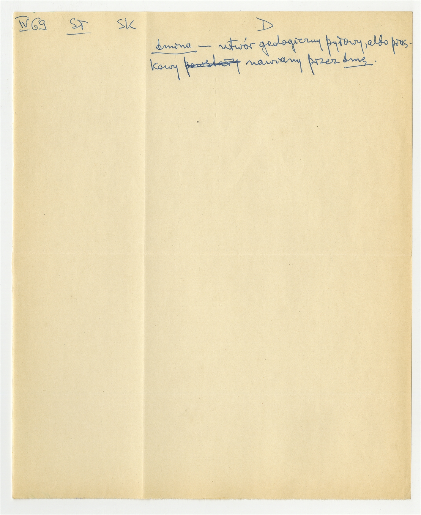 Rękopis słownika w postaci luźnych kartek - strona 36: hasło słownikowe na literę D IV [19]69