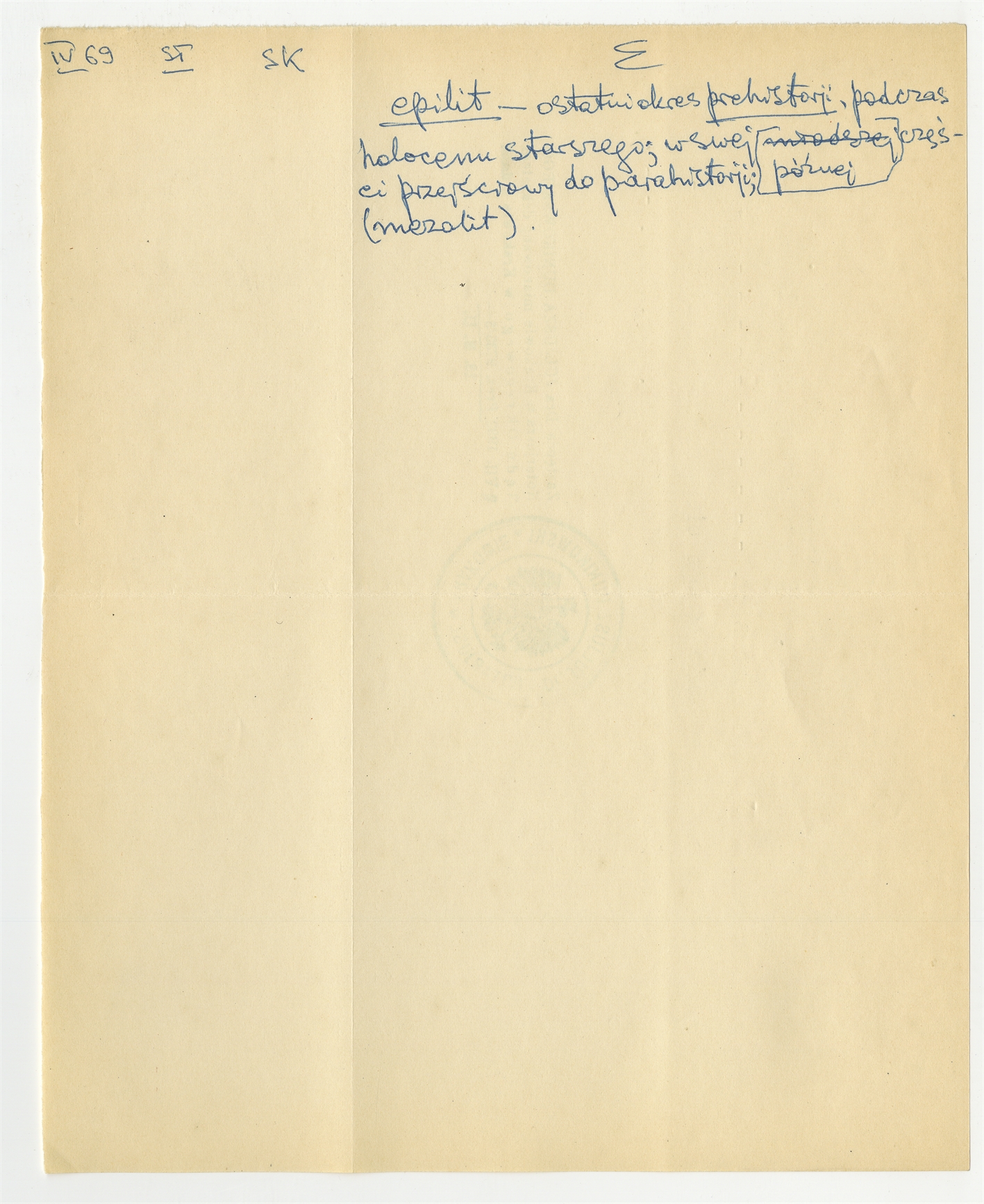Rękopis słownika w postaci luźnych kartek - strona 42: hasło słownikowe na literę E IV [19]69