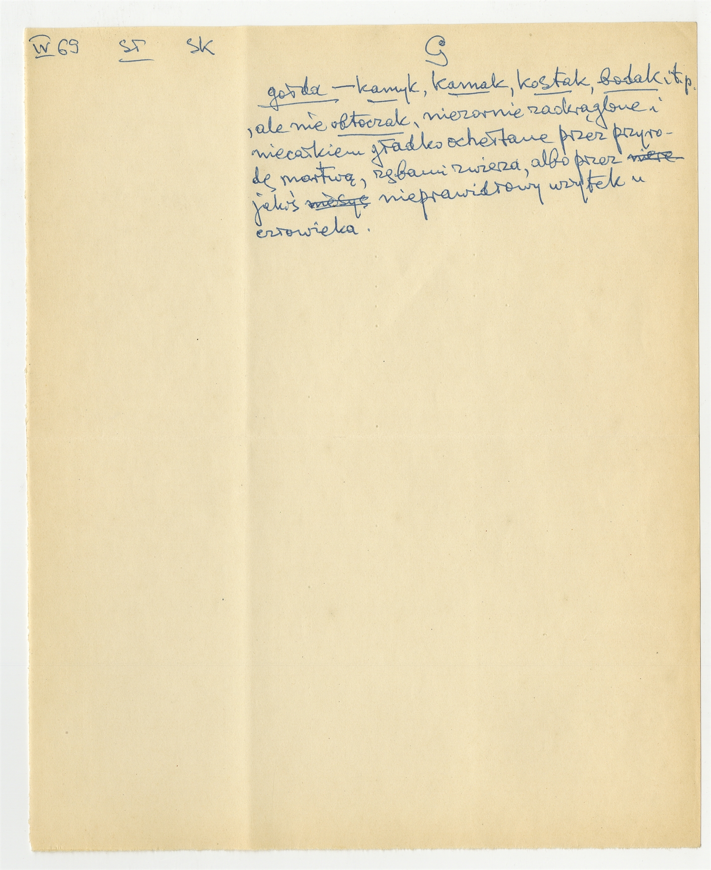 Rękopis słownika w postaci luźnych kartek - strona 43: hasło słownikowe na literę G IV [19]69