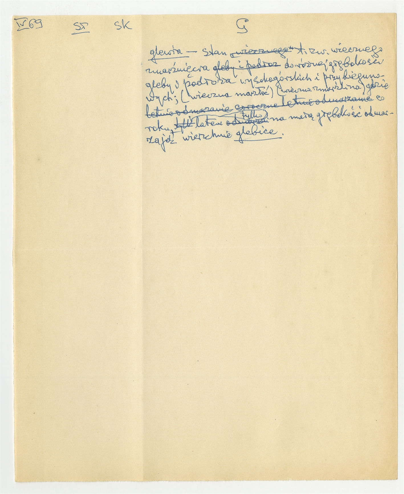 Rękopis słownika w postaci luźnych kartek - strona 49: hasło słownikowe na literę G IV [19]69