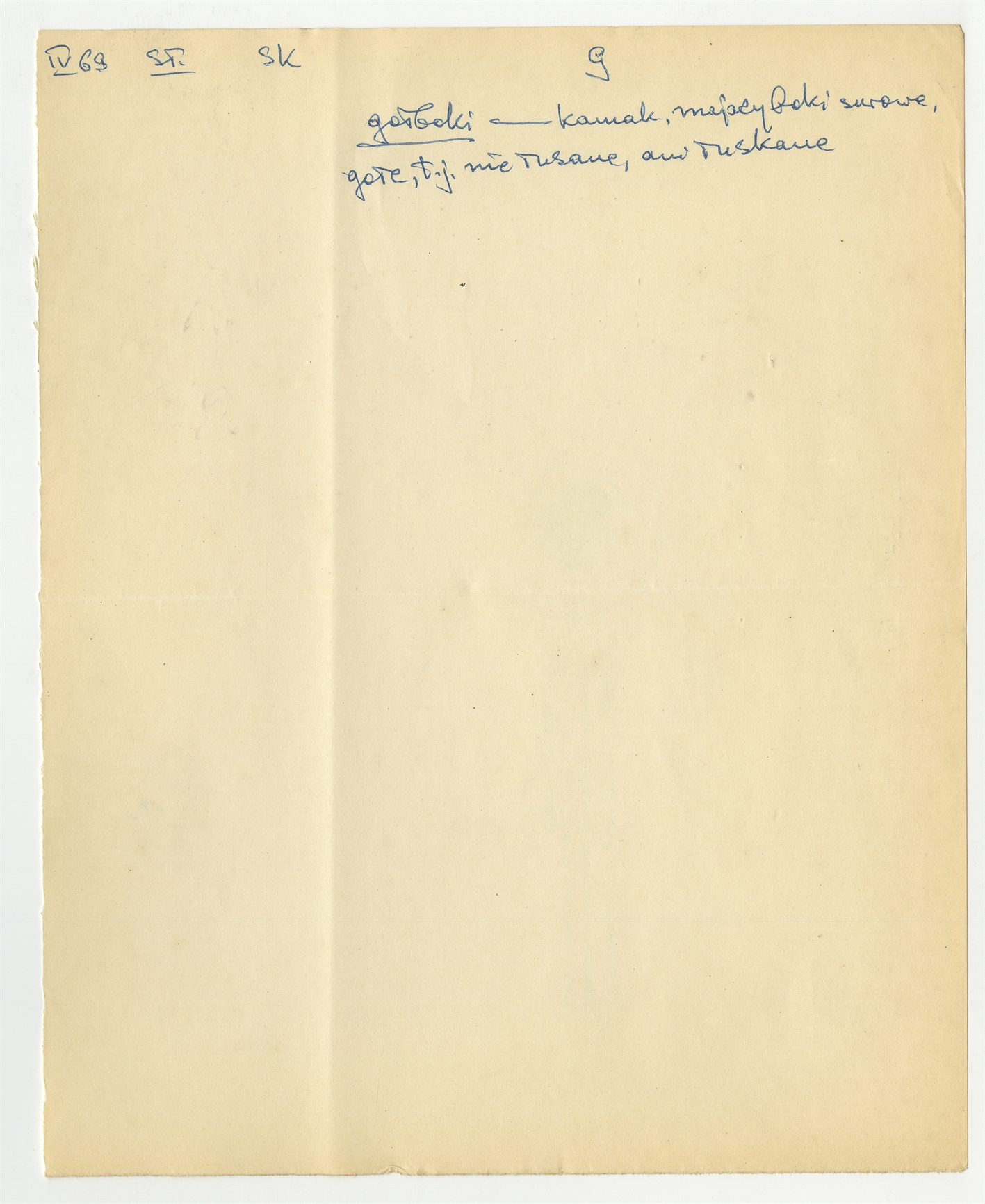 Rękopis słownika w postaci luźnych kartek - strona 52: hasło słownikowe na literę G IV [19]69