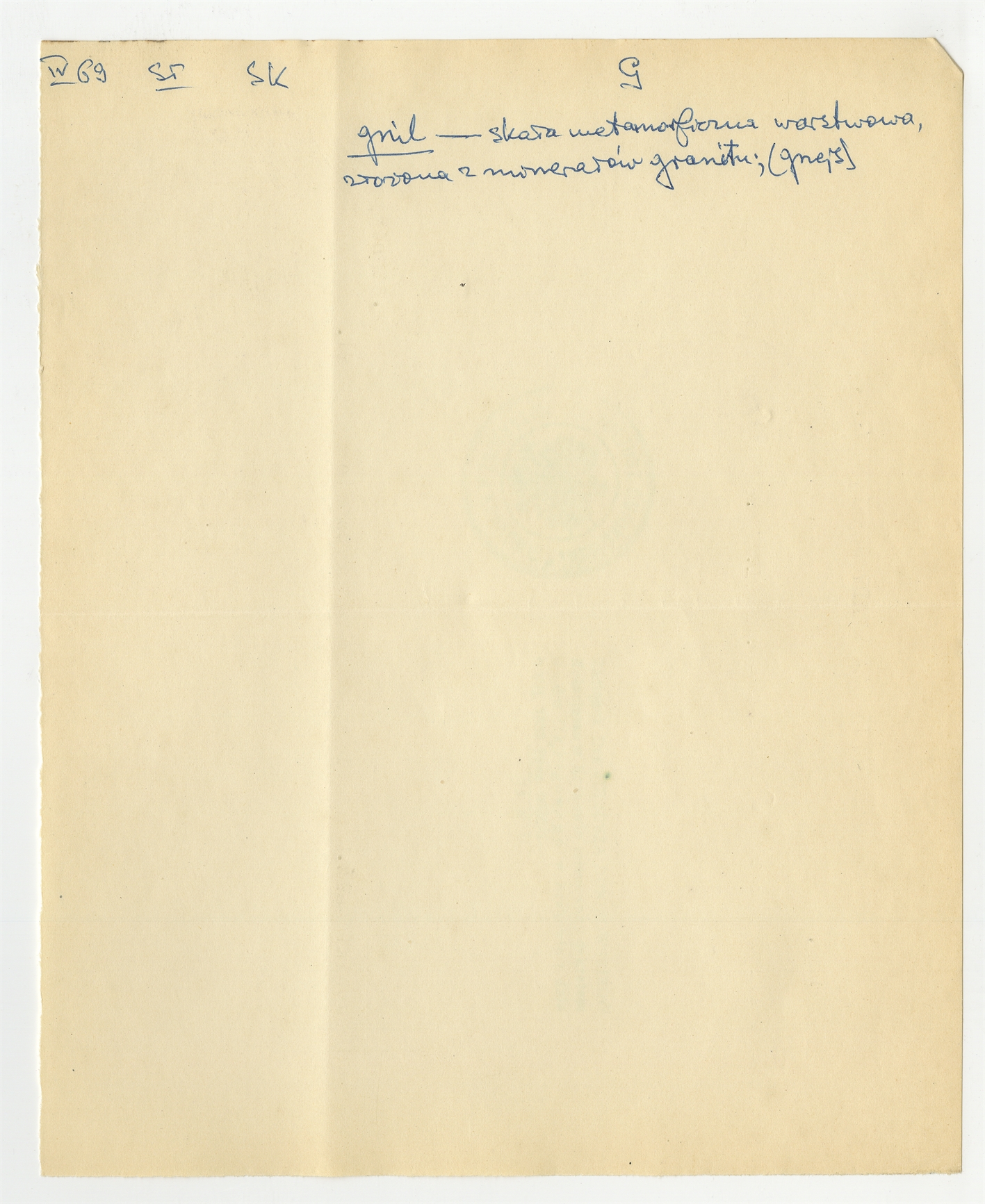 Rękopis słownika w postaci luźnych kartek - strona 53: hasło słownikowe na literę G IV [19]69