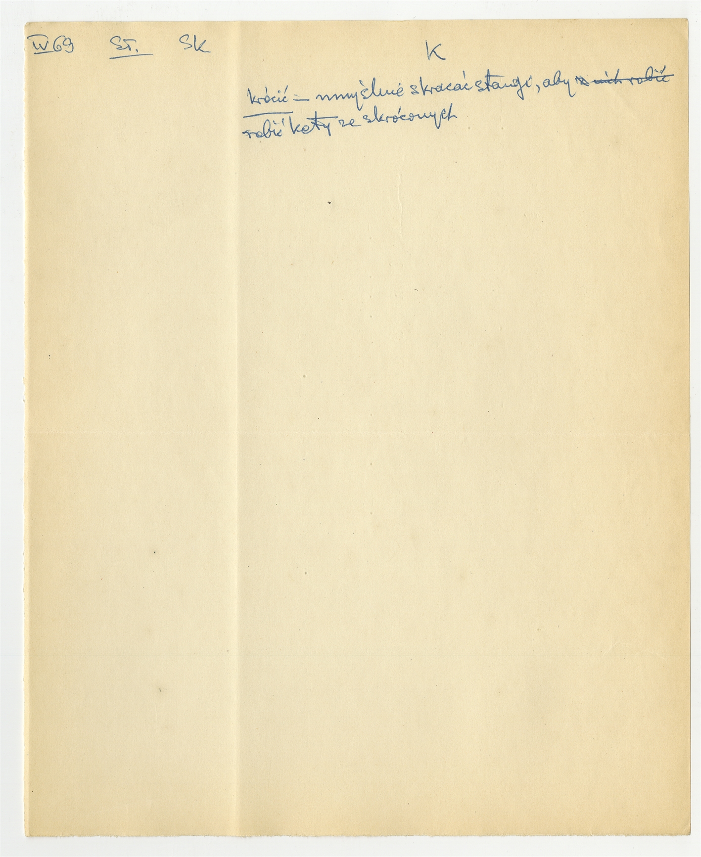 Rękopis słownika w postaci luźnych kartek - strona 67: hasło słownikowe na literę K IV [19]69