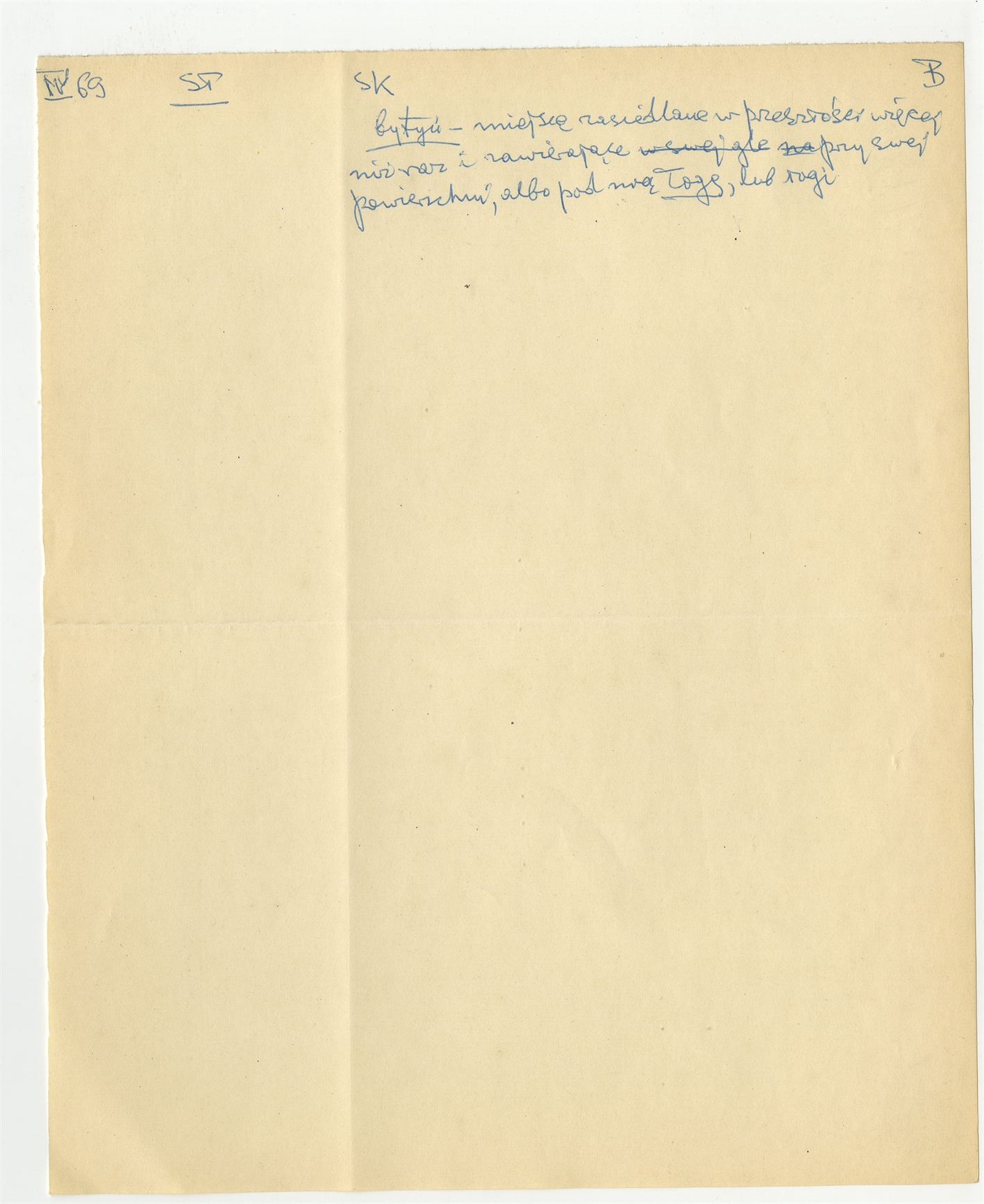 Rękopis słownika w postaci luźnych kartek - strona 7: hasło słownikowe na literę B IV [19]69