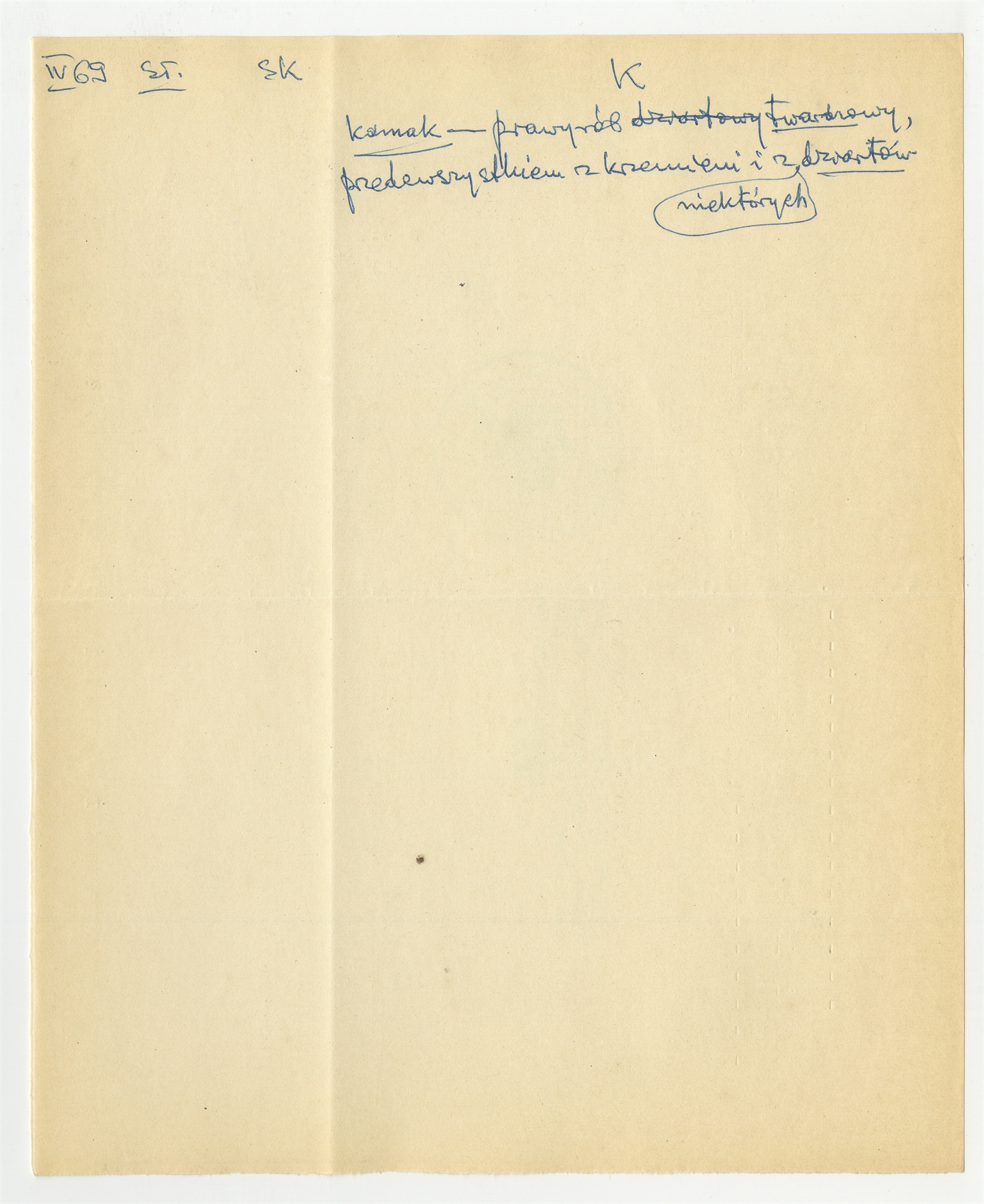 Rękopis słownika w postaci luźnych kartek - strona 70: hasło słownikowe na literę K IV [19]69