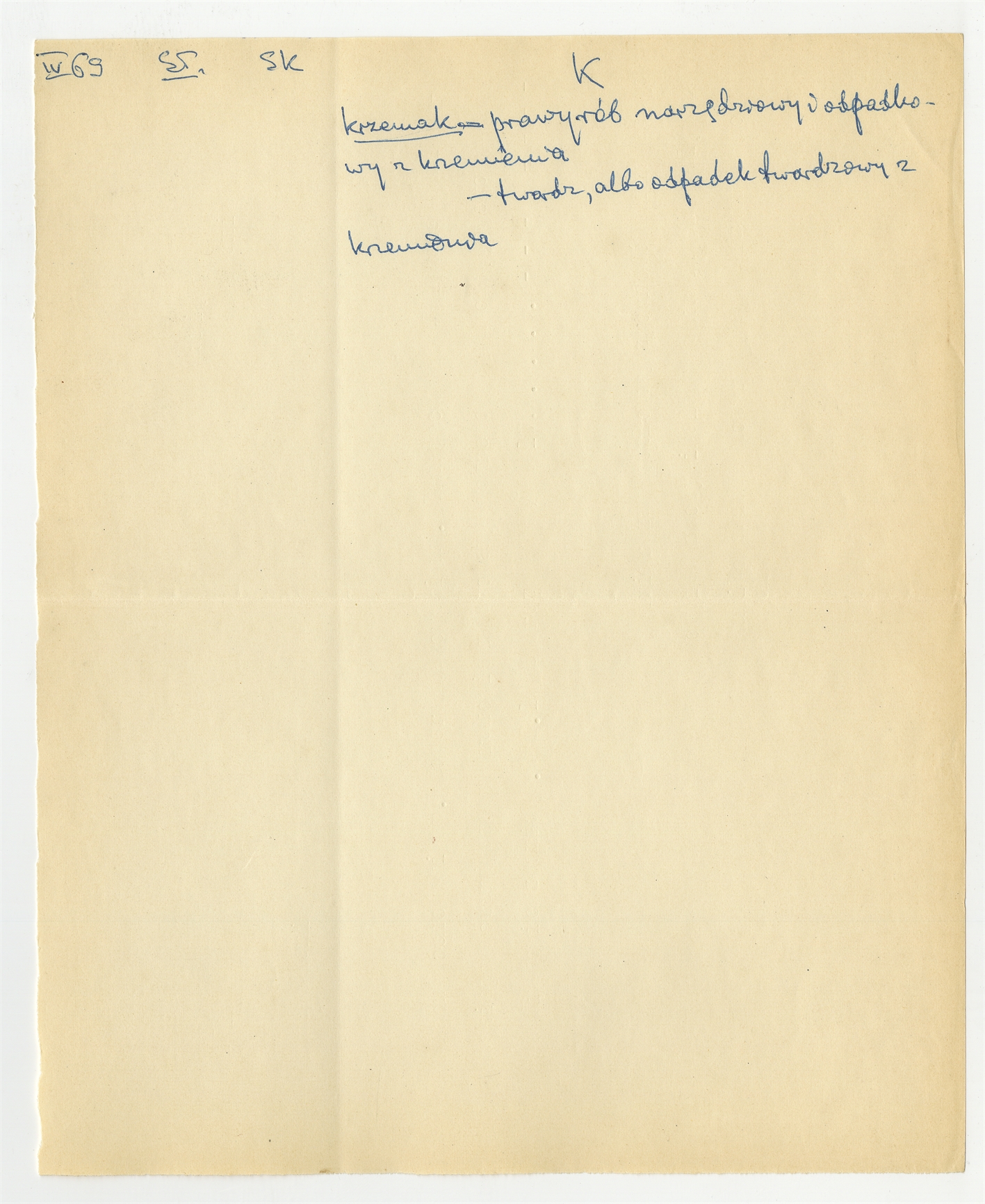 Rękopis słownika w postaci luźnych kartek - strona 76: hasło słownikowe na literę K IV [19]69