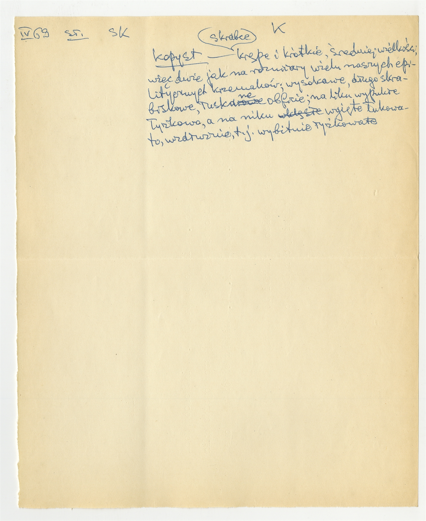 Rękopis słownika w postaci luźnych kartek - strona 80: hasło słownikowe na literę K IV [19]69