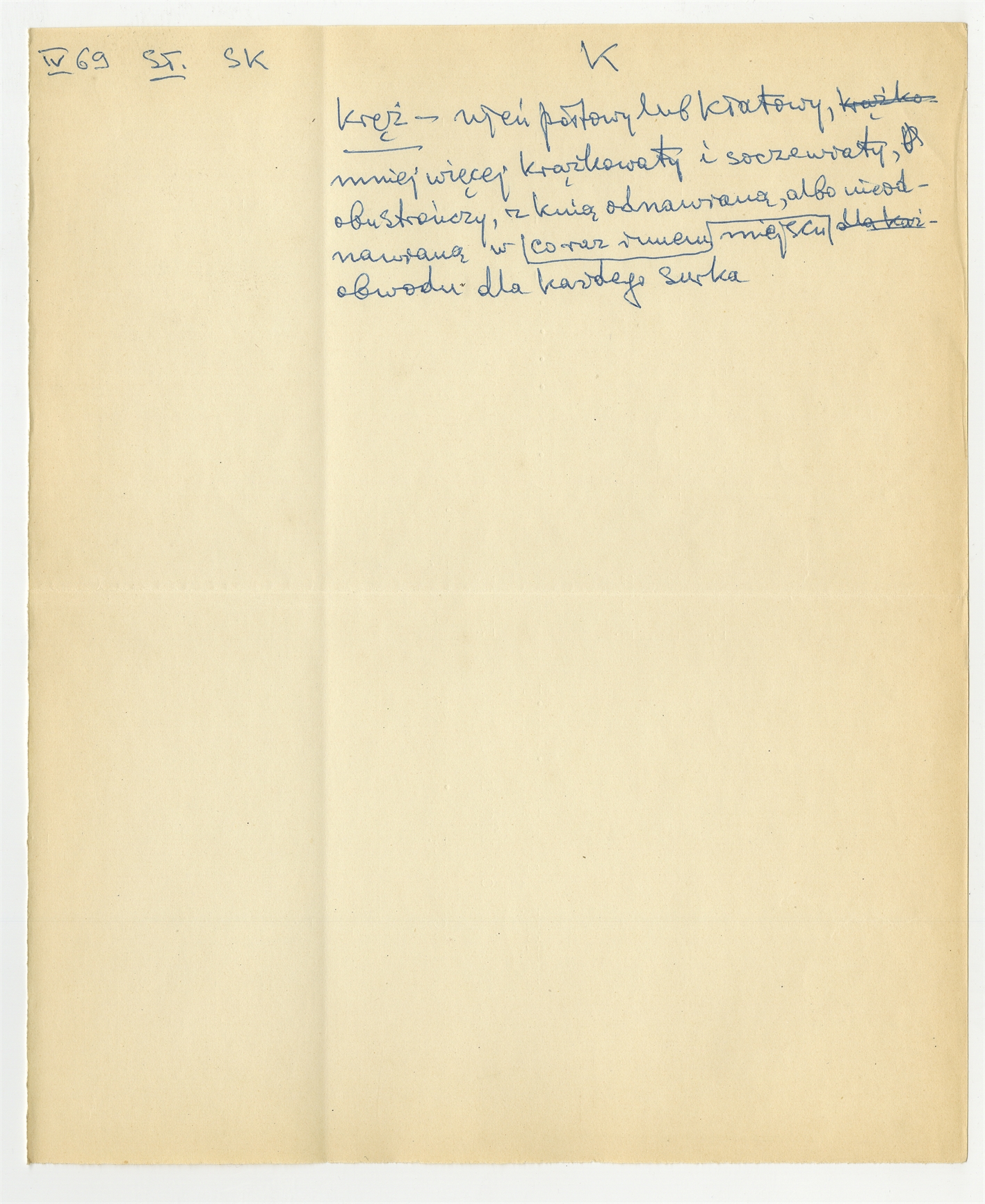 Rękopis słownika w postaci luźnych kartek - strona 91: hasło słownikowe na literę K IV [19]69