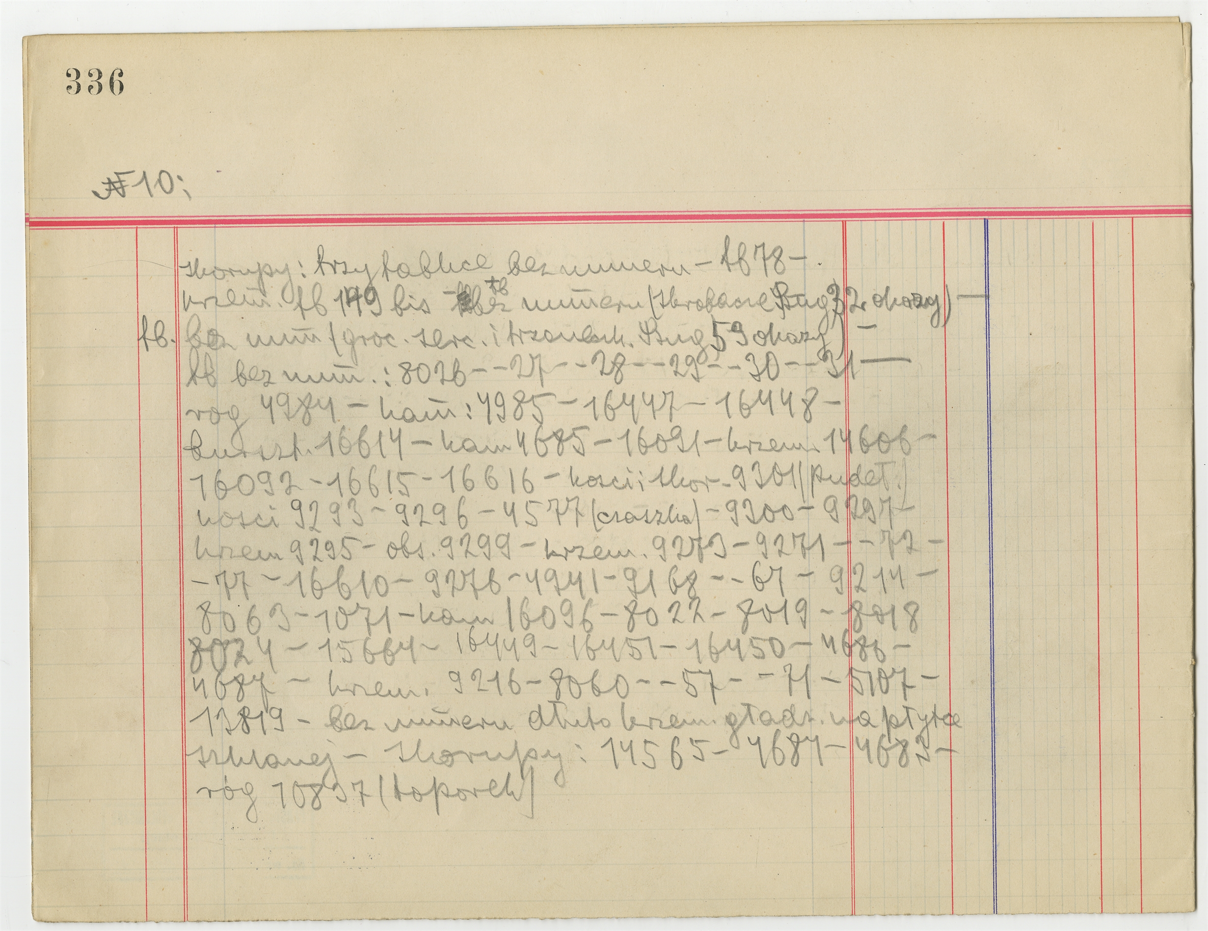 Rękopis - Spis numerów inwentarzy zabytków w gablotach wystawowych MEM - witryna N10