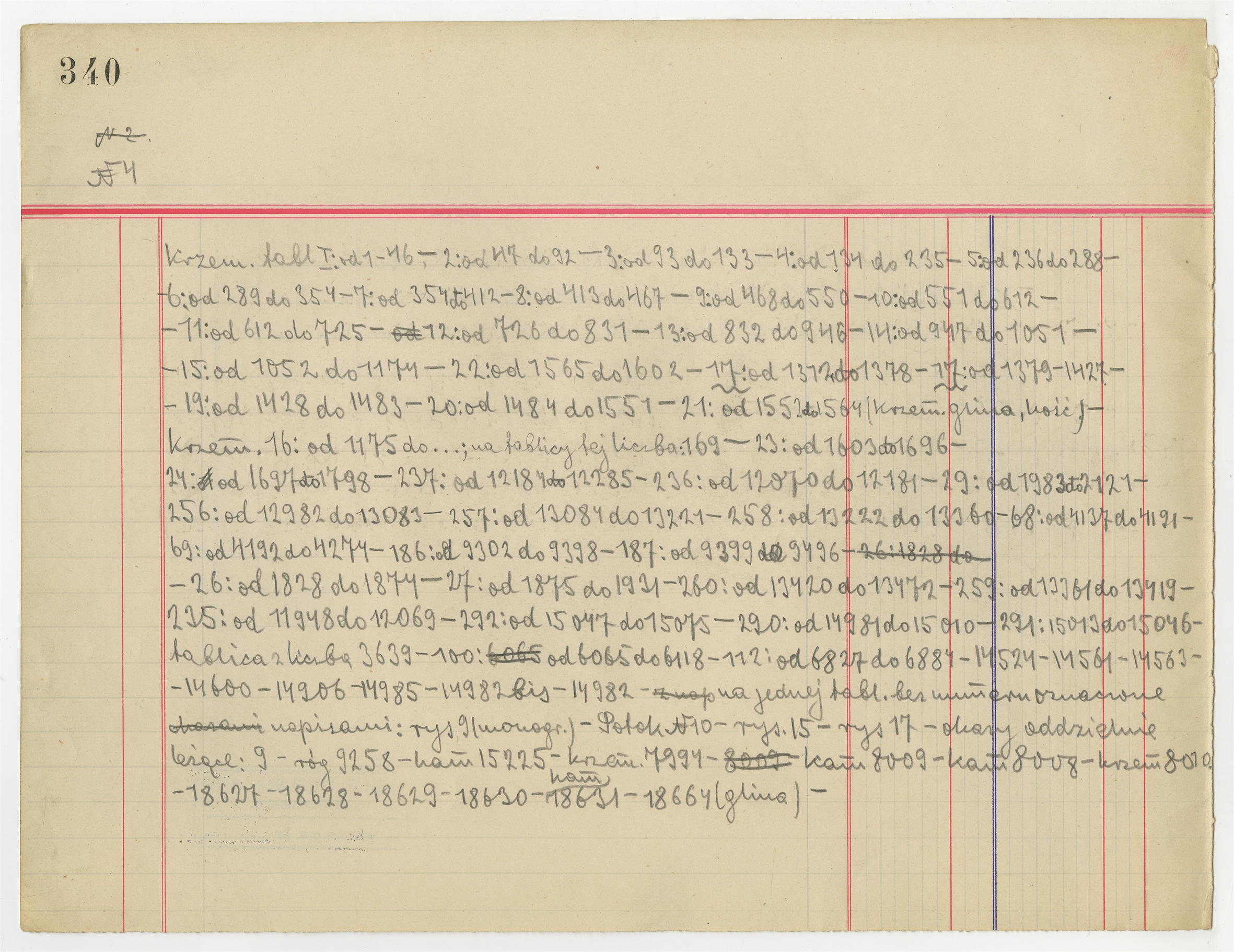 Rękopis - Spis numerów inwentarzy zabytków w gablotach wystawowych MEM - witryna N4