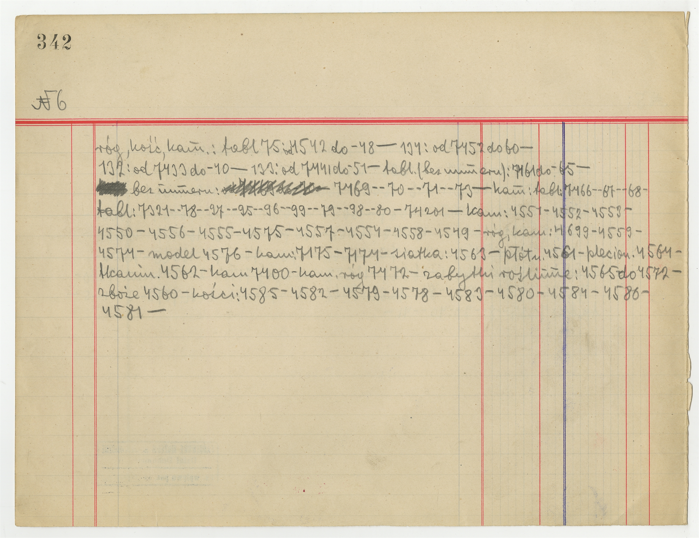 Rękopis - Spis numerów inwentarzy zabytków w gablotach wystawowych MEM - witryna N6
