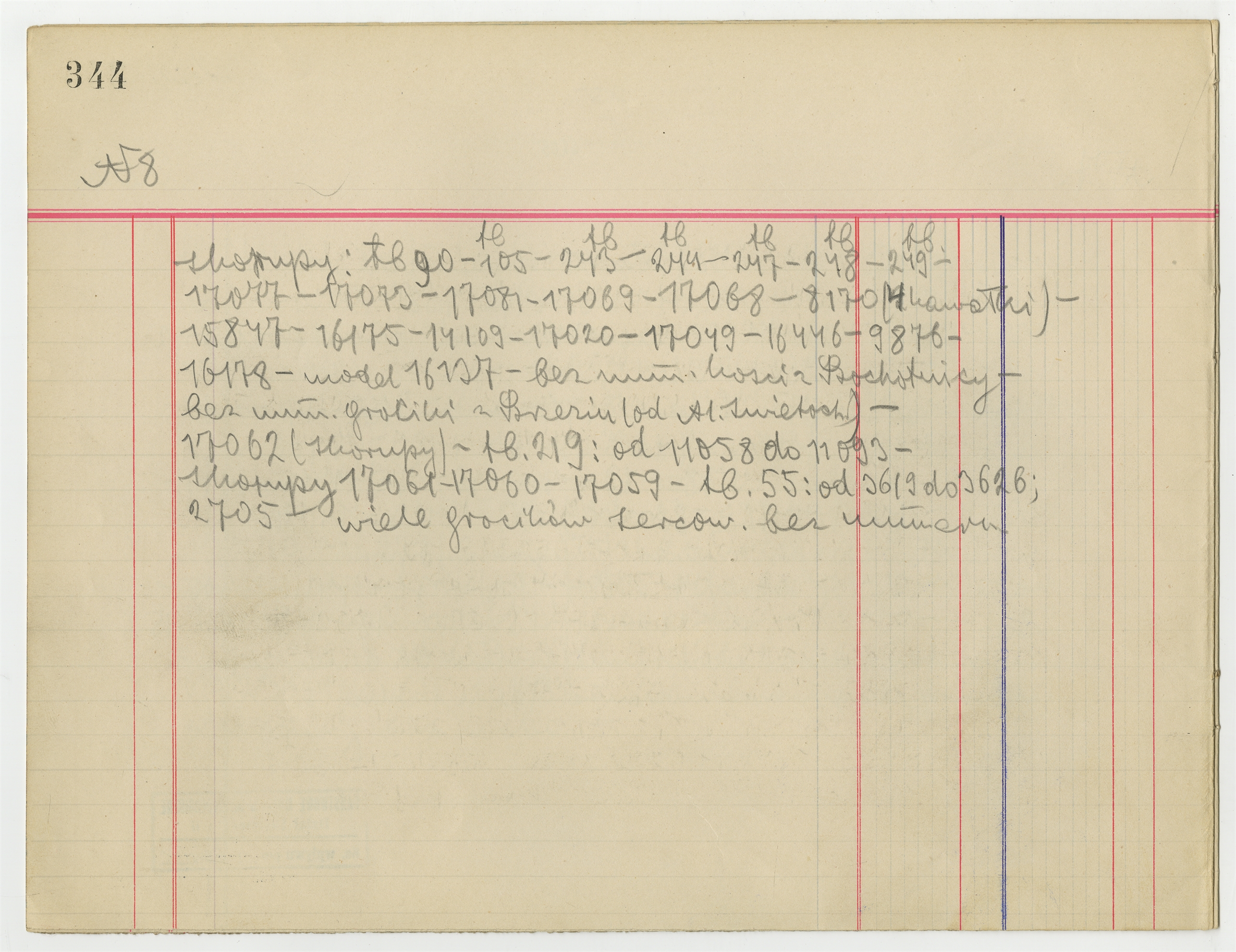 Rękopis - Spis numerów inwentarzy zabytków w gablotach wystawowych MEM - witryna N8